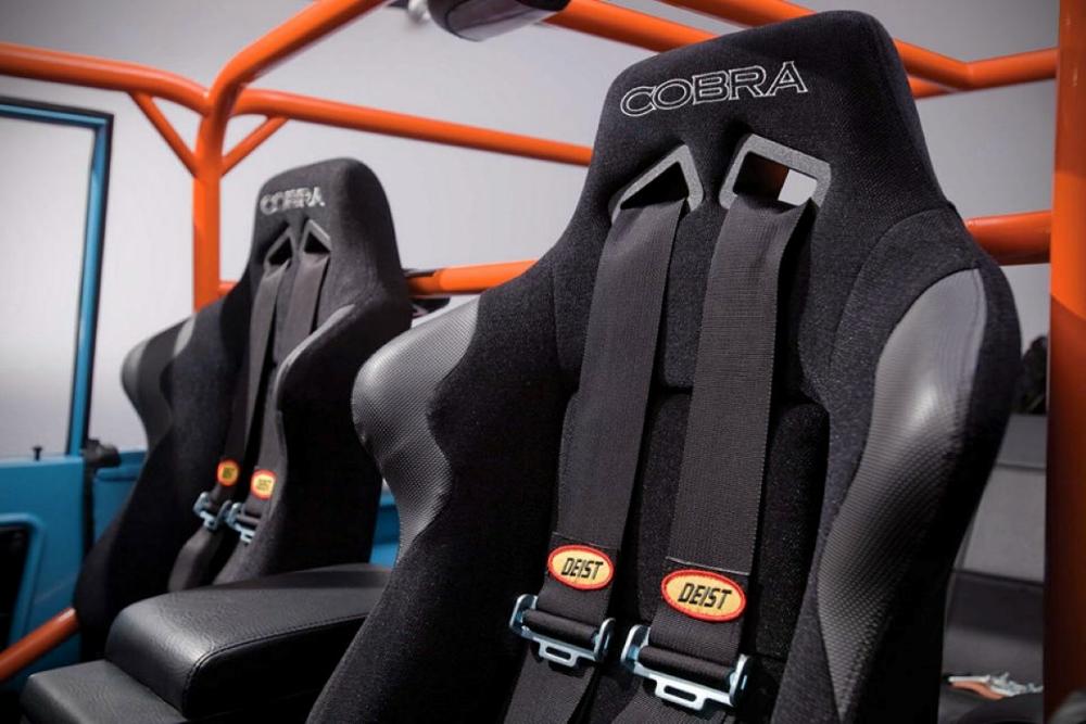 You can see that the original cab has been reinforced with a fully integrated roll-cage. The front seats have been replaced with Cobra Sport seats equipped with 4-Point belts and a harness by Deist.