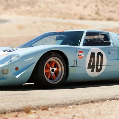 The body was painted in Gulf Powder Blue while the roll cage, bumpers, wheels, axles, and suspension components were done in Marigold Orange. These were the colors the Ford GT raced and won in at Lemans from 1966-1969.