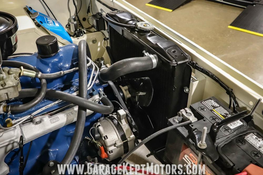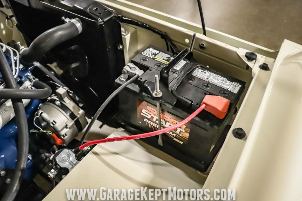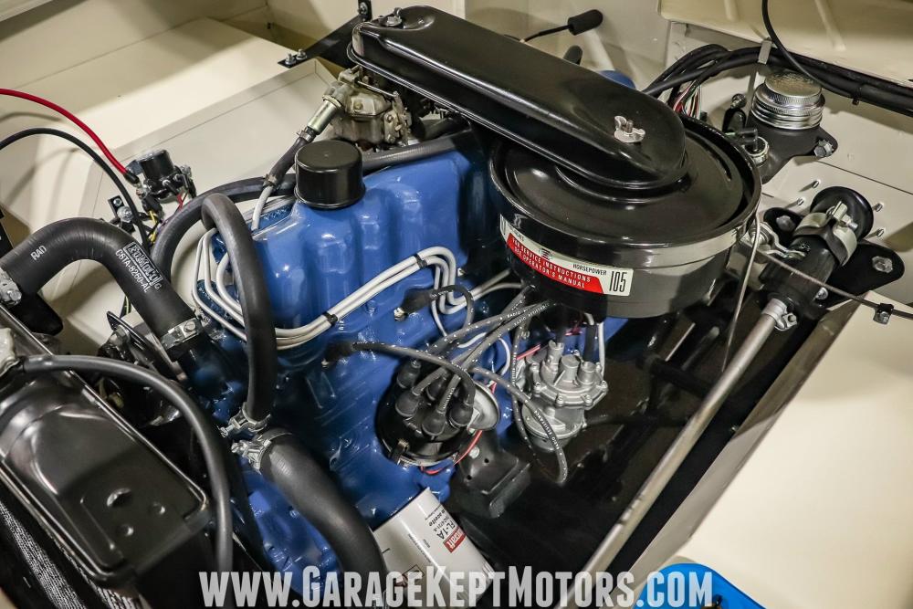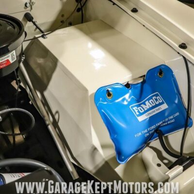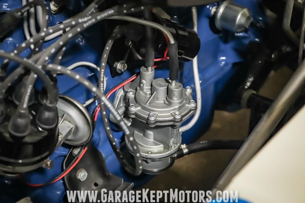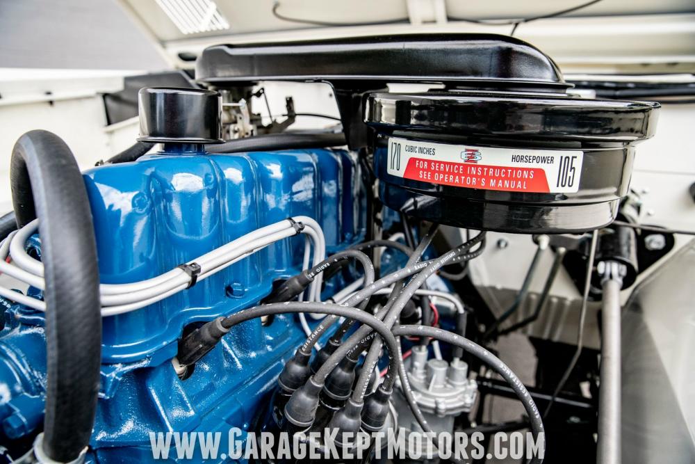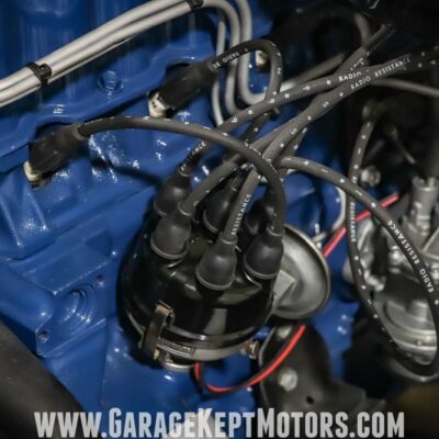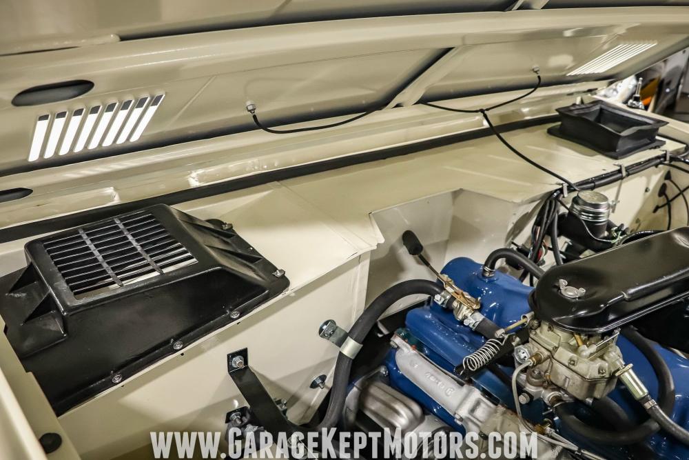 The engine was bored .040” over with new pistons; the crank was re-ground, and the head was completely rebuilt with new valves. The following items are new on the engine and transmission assembly: clutch kit; radiator; alternator; starter; voltage regulator; starter solenoid; engine gaskets; rebuilt carburetor; water pump; oil pump; timing chain; thermostat; “Ford” engine hoses; “Ford” battery cables; rebuilt distributor with igniter insert replacing points. Every fastener was cleaned, stripped, and re-coated before reassembly. Every bracket and rebuilt component were sandblasted and powder-coated or repainted. All fasteners and small components have been zinc re-coated by a local vendor.