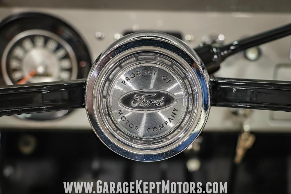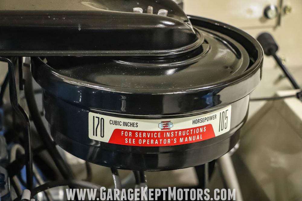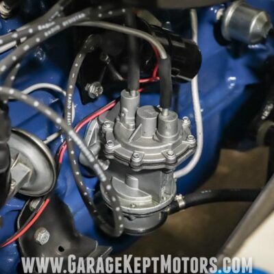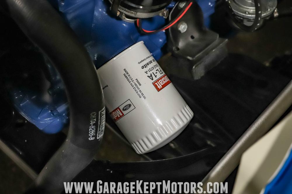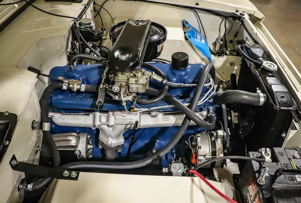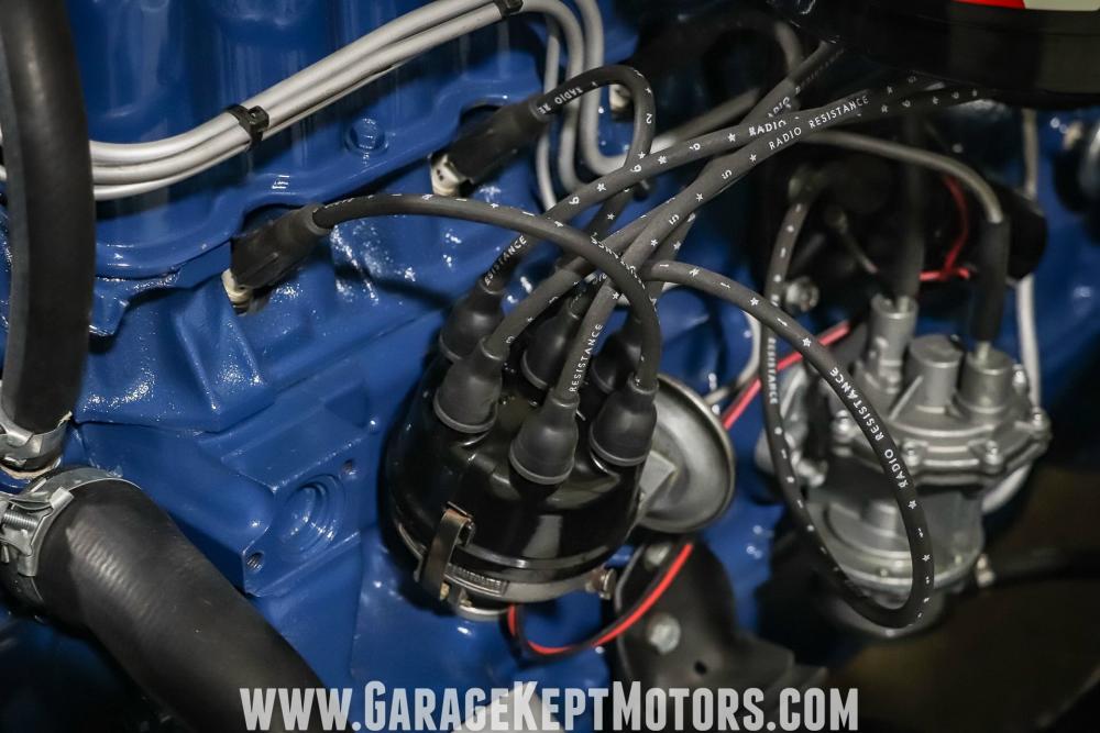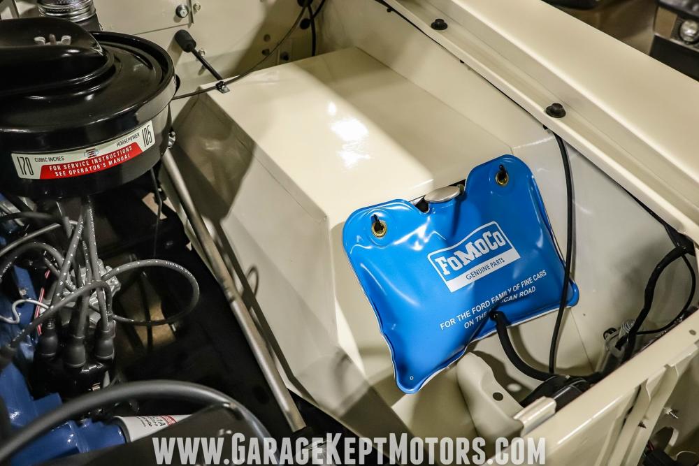 The engine was bored .040” over with new pistons; the crank was re-ground, and the head was completely rebuilt with new valves. The following items are new on the engine and transmission assembly: clutch kit; radiator; alternator; starter; voltage regulator; starter solenoid; engine gaskets; rebuilt carburetor; water pump; oil pump; timing chain; thermostat; “Ford” engine hoses; “Ford” battery cables; rebuilt distributor with igniter insert replacing points. Every fastener was cleaned, stripped, and re-coated before reassembly. Every bracket and rebuilt component were sandblasted and powder-coated or repainted. All fasteners and small components have been zinc re-coated by a local vendor.