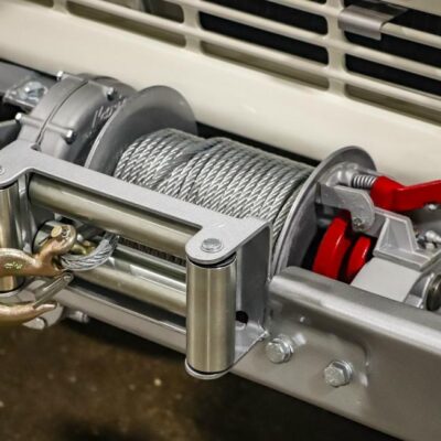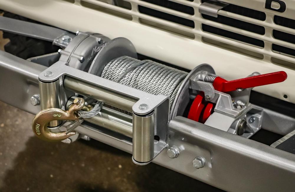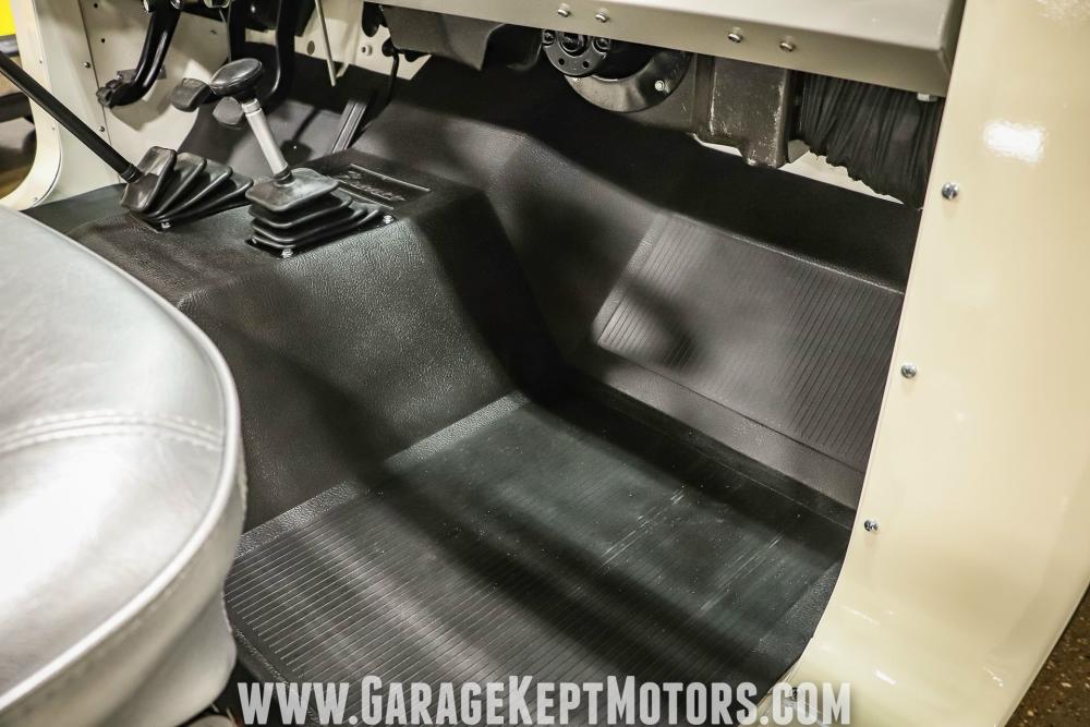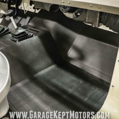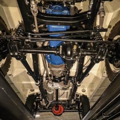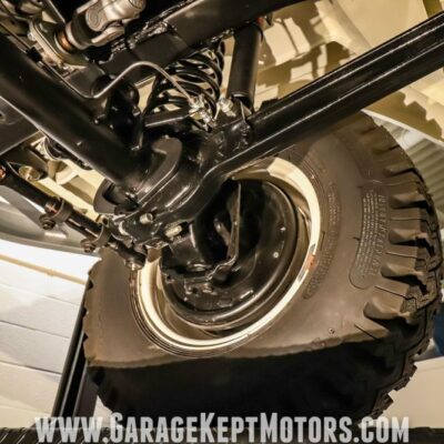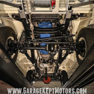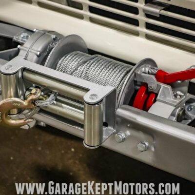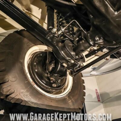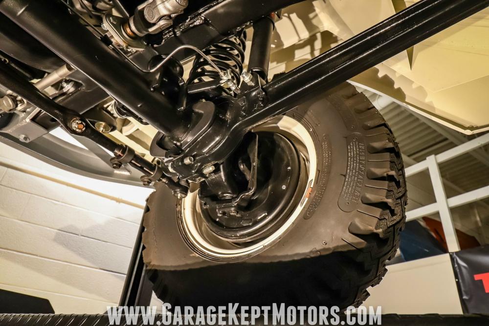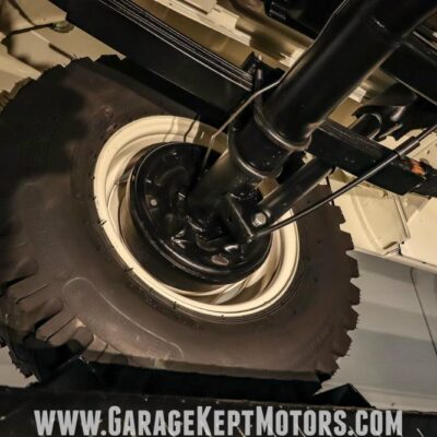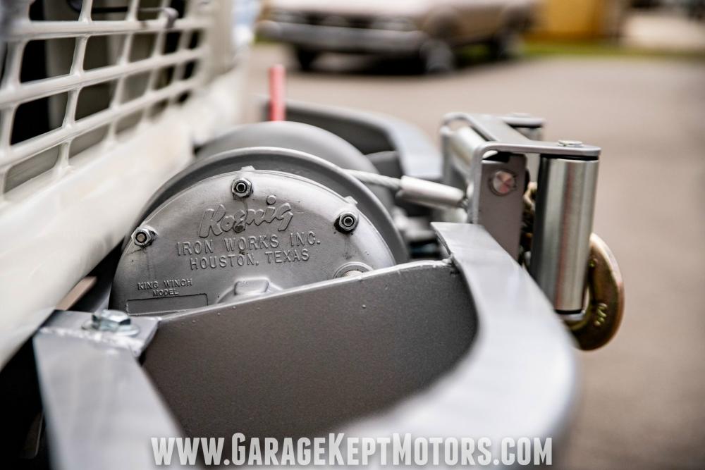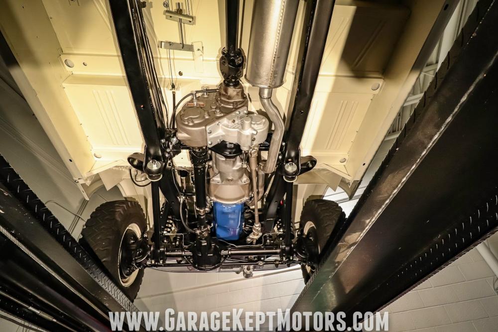 Complete disassembly and sandblasting of axles and all chassis components; axles, frame and rear springs wet-sprayed with urethane chassis paint; all other chassis components powder-coated; front and rear axles, transfer case and transmission inspected, and new seals and bearings installed. The following are new chassis items: drivelines front and rear; brakes front and rear; stainless steel brake lines; rubber flex lines parking brake cables; fuel lines; fuel tank; fuel-tank sending unit; fuel-tank strap; rubber bushings in the front axle; body mounts; period-correct tires mounted on correct “Ford” rims (also sand-blasted and repainted). The PTO winch was completely rebuilt including new main shaft, bearings, and seals.