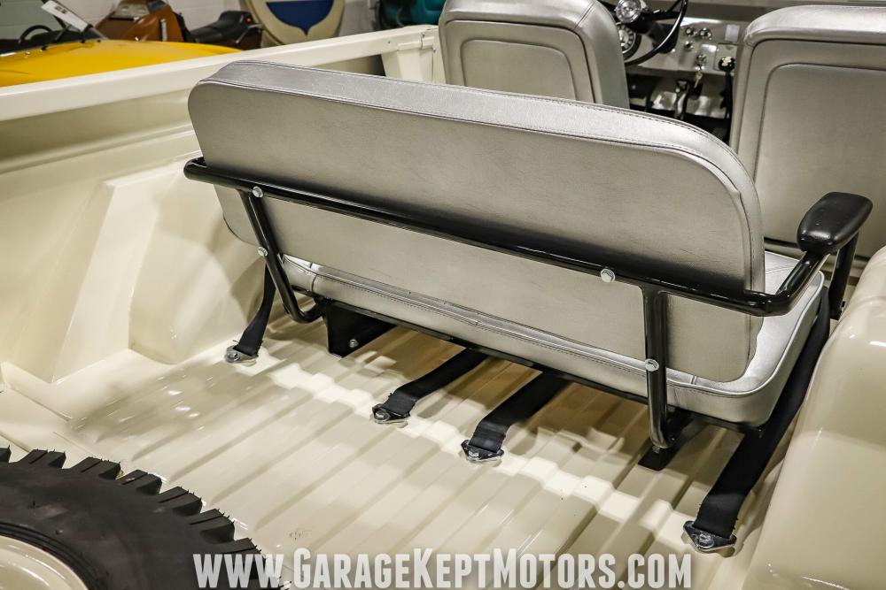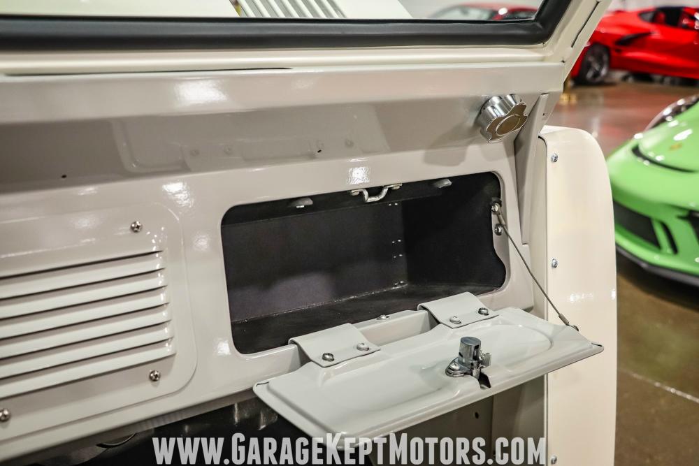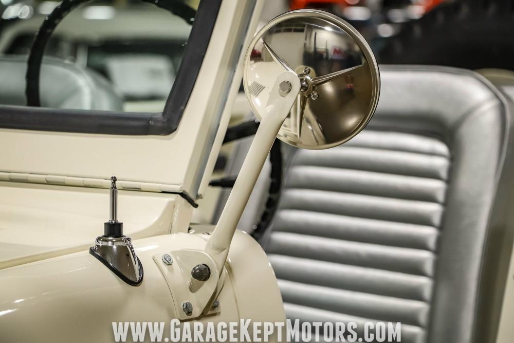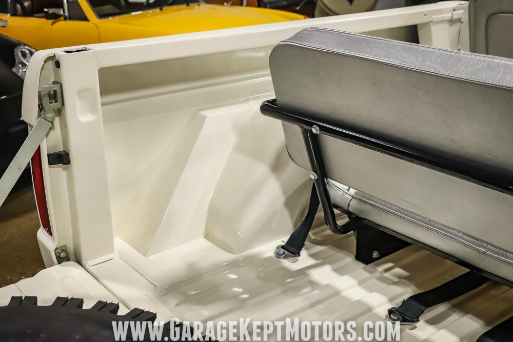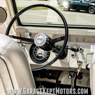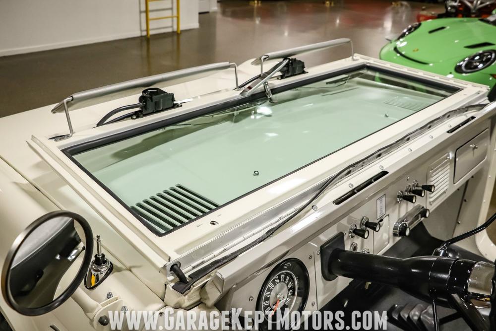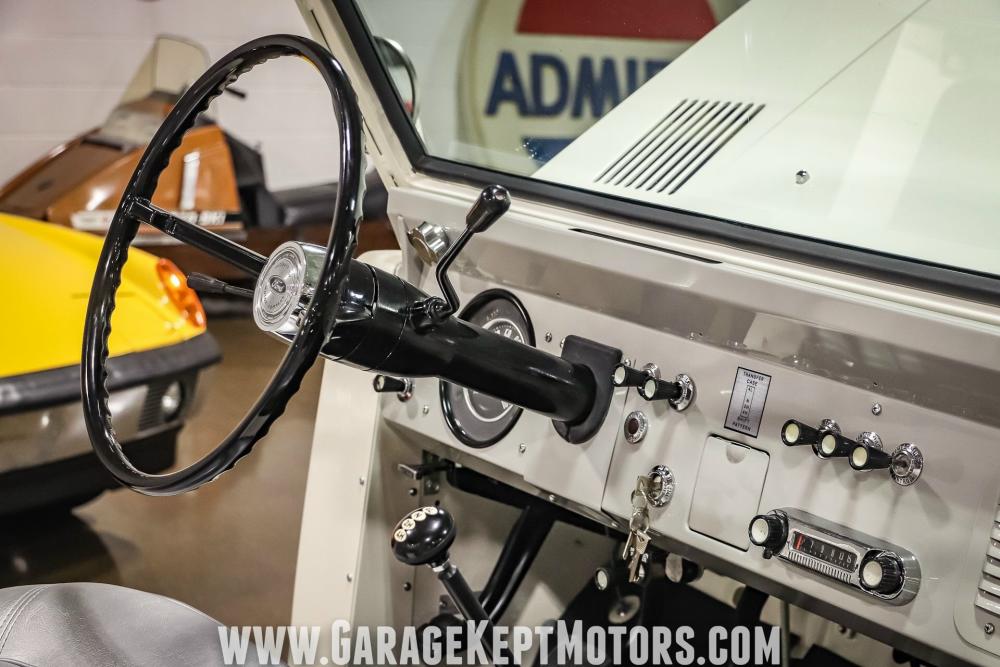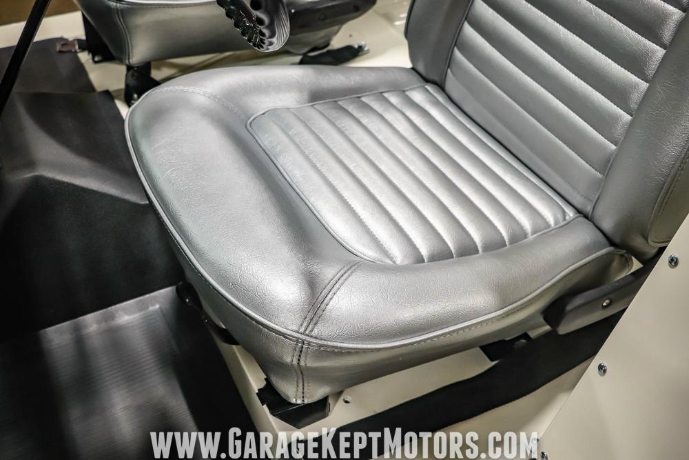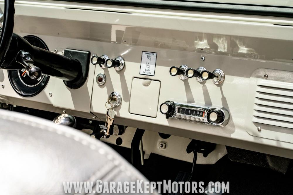 All of the following are either new or rebuilt: Fuel tank and sending unit; steering column; steering tie-rods; windshield washer bag; windshield washer pump and lines; air-box seal; floor mat; steering wheel; dash knobs and bezels; glove-box liner; front engine-bay wire harness; under-dash wire harness; dash knobs for holding the windshield frame; windshield and gasket; headlights; parking and taillight lenses; stripes and letters; seat covers, seat foam front and rear; heater box; heater ducts; transfer-case shifter knob and boots; rubber pedal pads; mirror head; alternator wire harness.