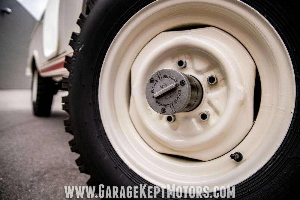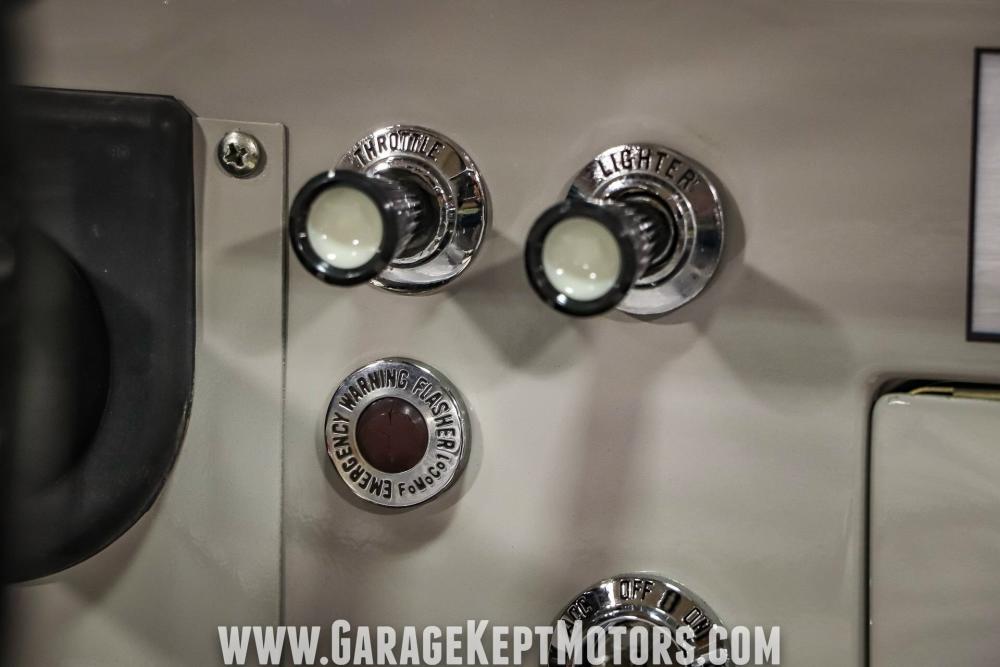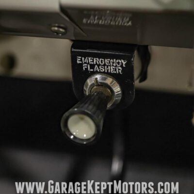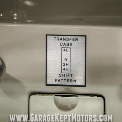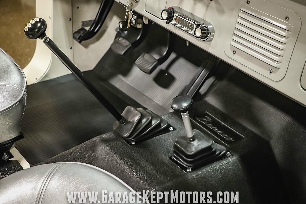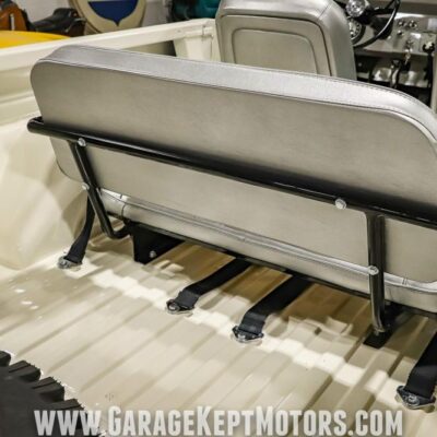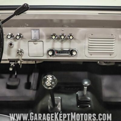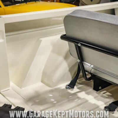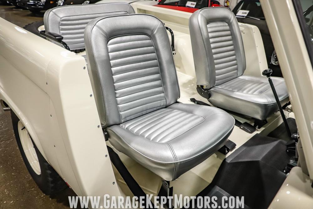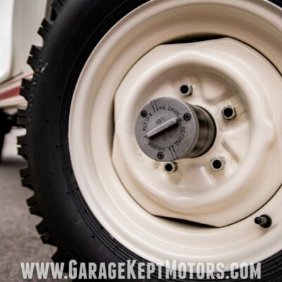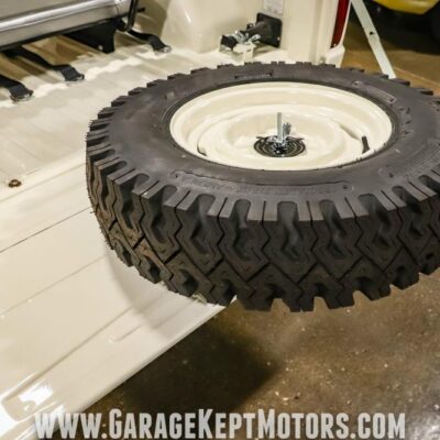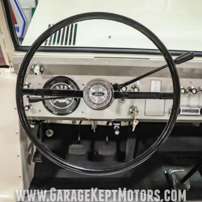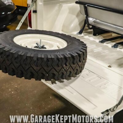 Early production eye-brow grille; early production metal DS fresh-air box; early production body tub made by Budd manufacturing; PTO winch; OEM “Ford” fiberglass roadster door inserts and OEM backing plates for inserts; correct ’66-only tailgate; correct ’66-only rear bumper; correct ’66 dash assembly with correct ’66-only knobs’ correct ’66-only steering-wheel horn button with Ford Motor Company logo; correct ’66-only silver sun visors; correct ’66-only tall transfer case shifter; correct ’66-only silver seats; correct ’66 seat belts; Ford-script engine components, wire, hoses, cables, and voltage regulator.