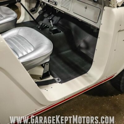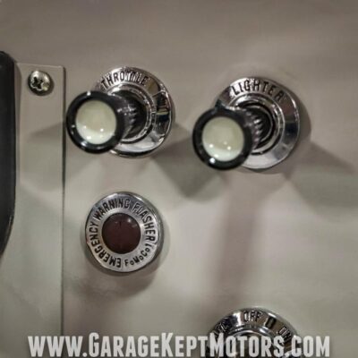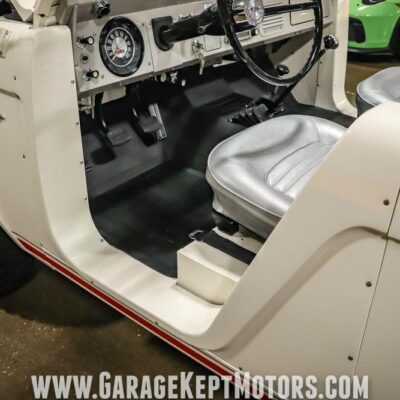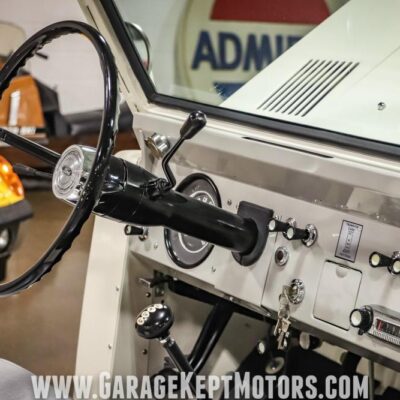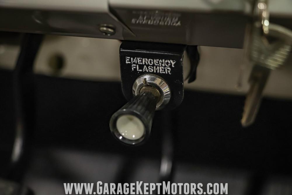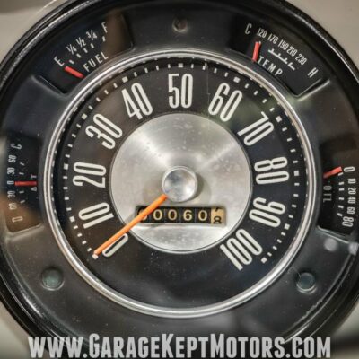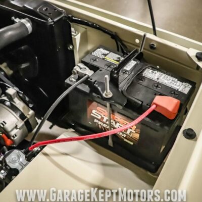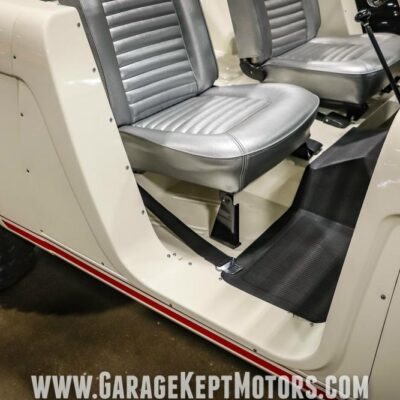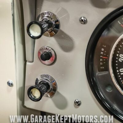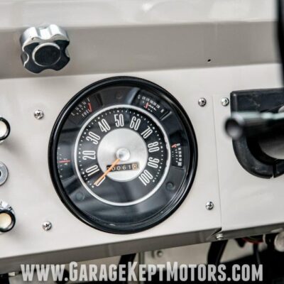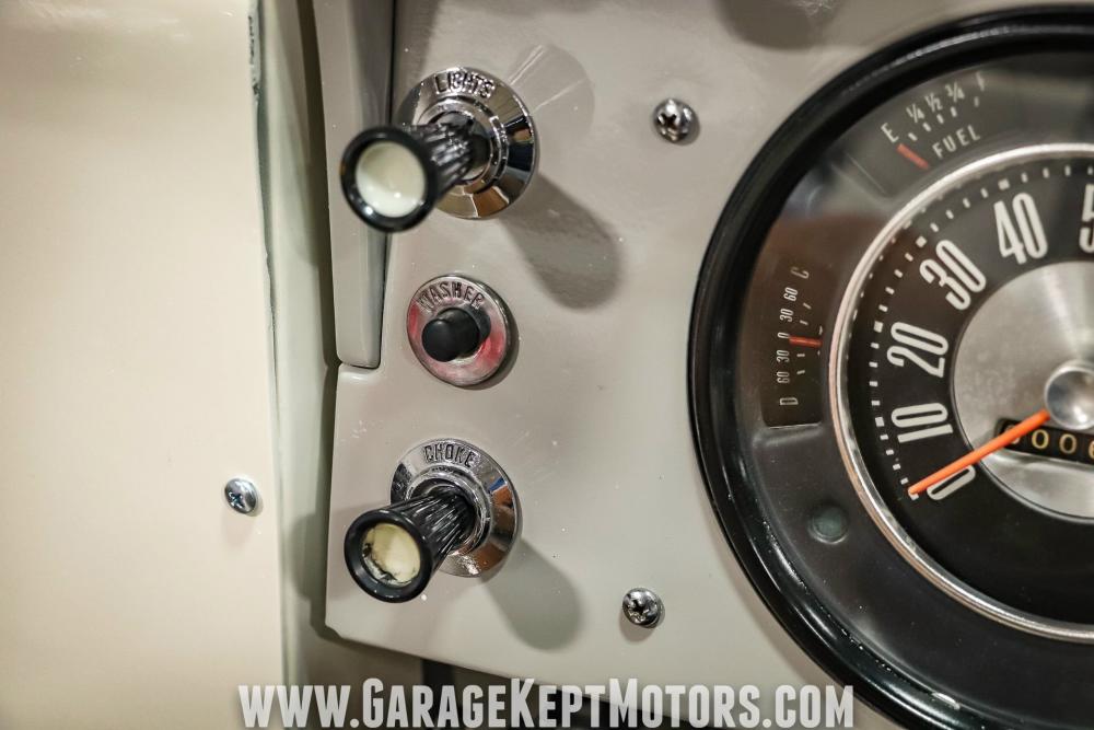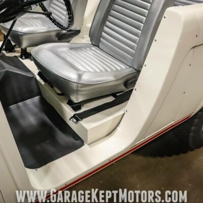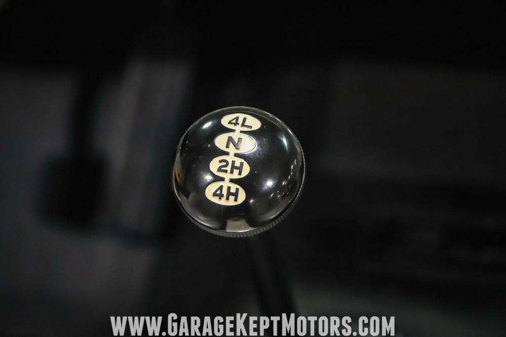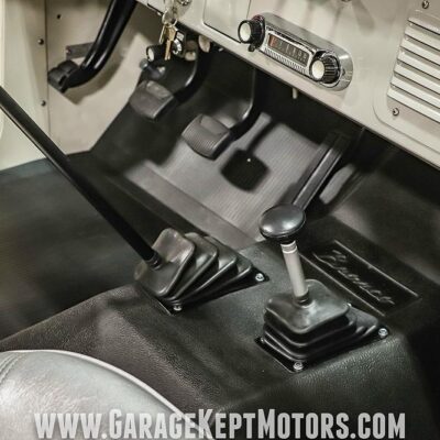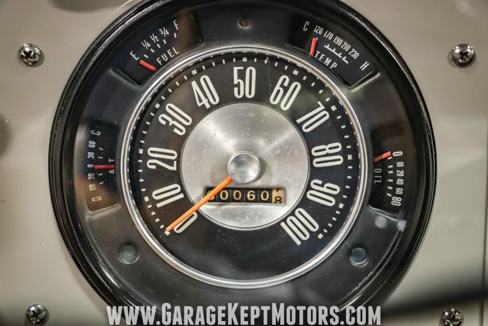 Early production eye-brow grille; early production metal DS fresh-air box; early production body tub made by Budd manufacturing; PTO winch; OEM “Ford” fiberglass roadster door inserts and OEM backing plates for inserts; correct ’66-only tailgate; correct ’66-only rear bumper; correct ’66 dash assembly with correct ’66-only knobs’ correct ’66-only steering-wheel horn button with Ford Motor Company logo; correct ’66-only silver sun visors; correct ’66-only tall transfer case shifter; correct ’66-only silver seats; correct ’66 seat belts; Ford-script engine components, wire, hoses, cables, and voltage regulator.
