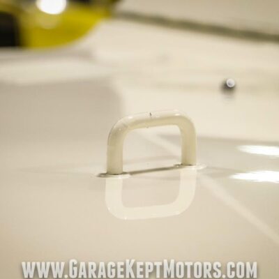Complete disassembly, removal of rear quarter panels and rockers for dent repairs; sandblasting and epoxy primer treatment for 100% of the body tub while it was on the rotisserie; new OEM quarter panels and rockers (all other “body tub” sheet metal is original to the Bronco); hood and fenders are new as well. Finished body work was completed on the rotisserie with several iterations of priming and sanding using urethane primer and high-quality fillers; paint was sprayed in acrylic urethane and color sanded as needed.
