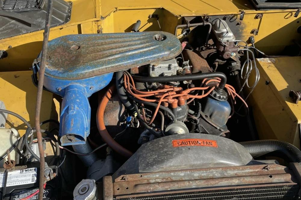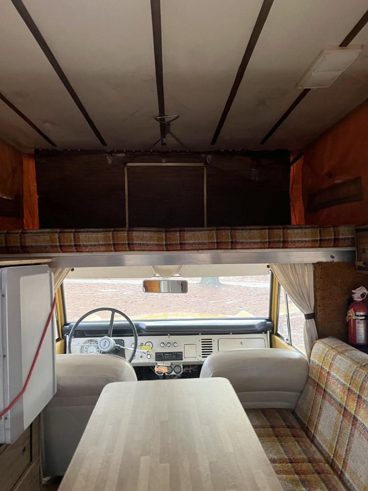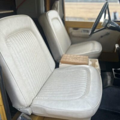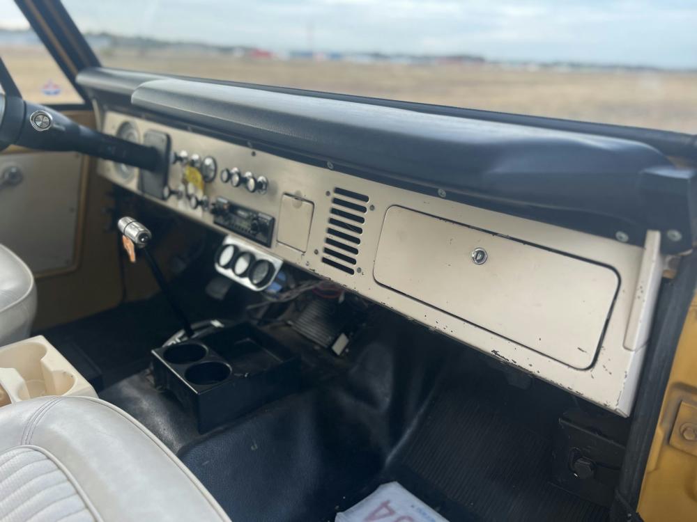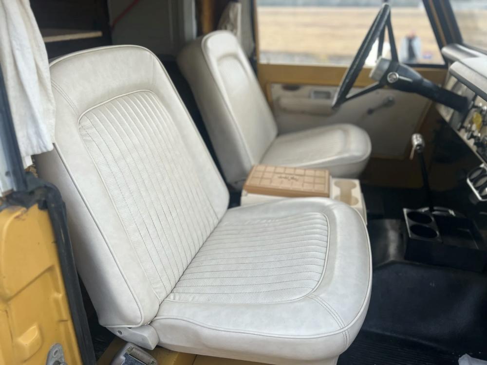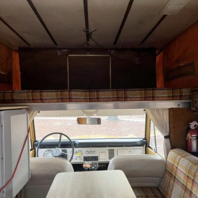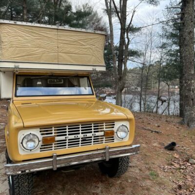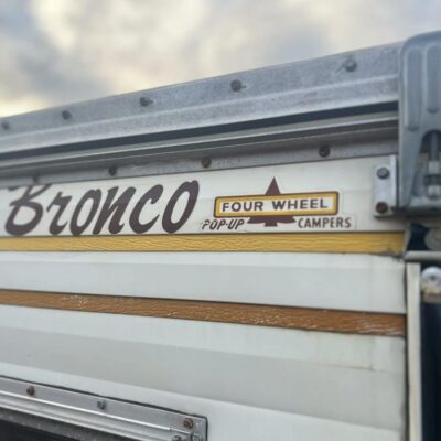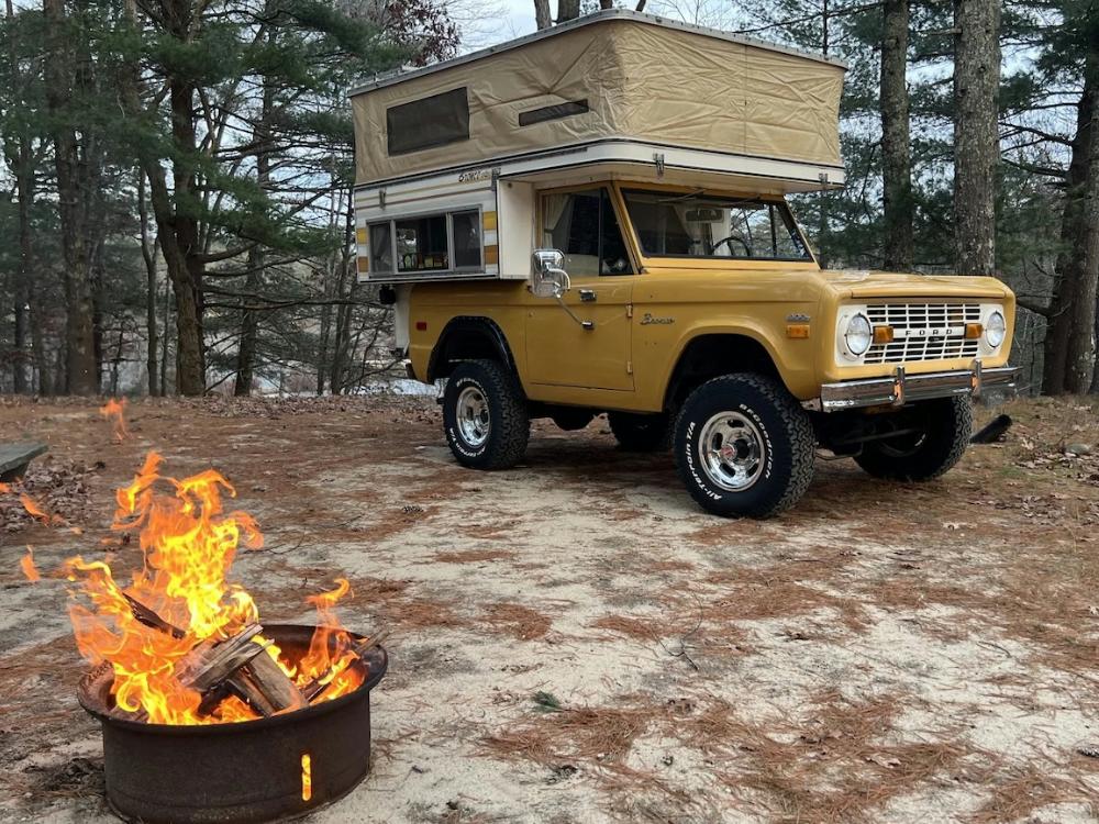 This 1971 Ford Bronco is fitted with a Four Wheel pop-up camper and powered by a 302ci V8 mated to a three-speed manual transmission and a dual-range transfer case. The camper features a couch, an over-cabin bed, storage cabinets, a dual-burner stove, a cooler, and a sink. Additional equipment includes manually locking front hubs, 15″ wheels, rear wheel-arch extensions, chrome bumpers, and a Blaupunkt AM/FM/cassette stereo.