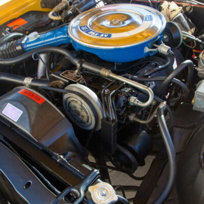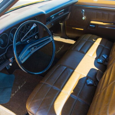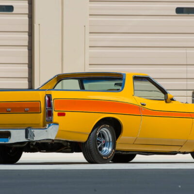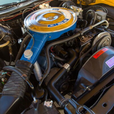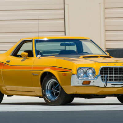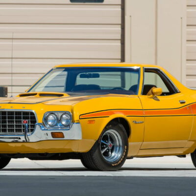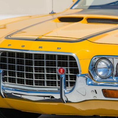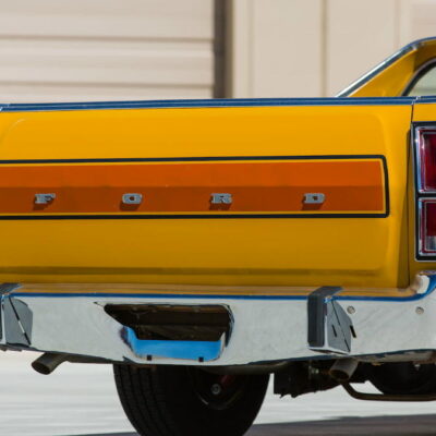 In 1972, a radical change occurred in the Torino and Ranchero lines. The sleek, pointy look of the previous year’s model was replaced with a larger, heavier design. Most prominent was a wide semioval grille reminiscent of a jet intake and a new body-on-frame design. Three models were still available; the now-standard 500, the new Squire with simulated woodgrain “paneling” along the flanks, and the sporty GT. Engine choices remained basically the same beginning with the 250 cubic-inch six-cylinder and a selection of V8s that ranged from the standard 302 to Cleveland and Windsor series 351s, plus the new-for-1972 400. The 429 V8 was still available in 1972. However, it suffered from lower compression ratios to better meet new emissions standards. A four-speed manual transmission was available on Cobra Jet-powered GT models.