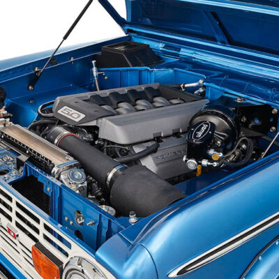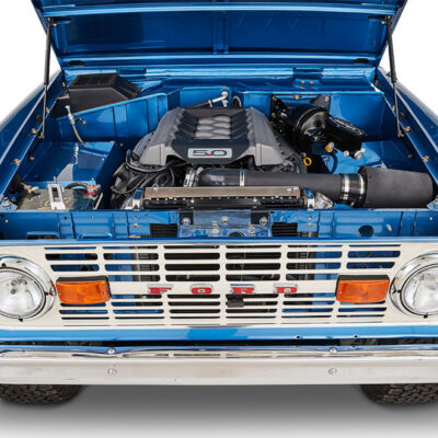 The engine and transmission is long gone and has been updated with a 435 horse Coyote 5.0L backed by a 4R70W automatic transmission.