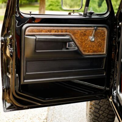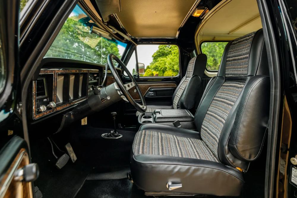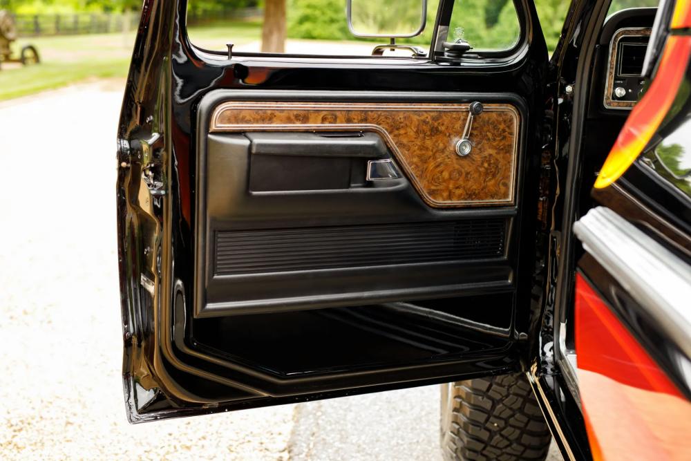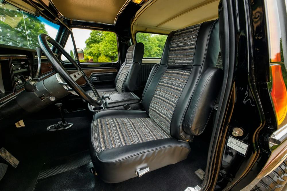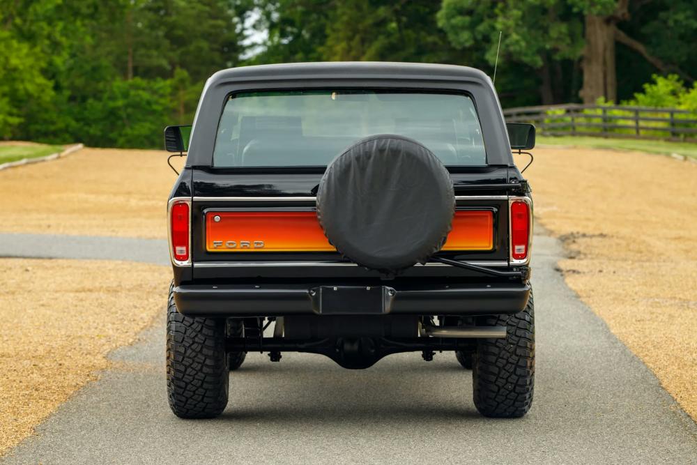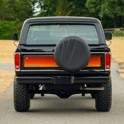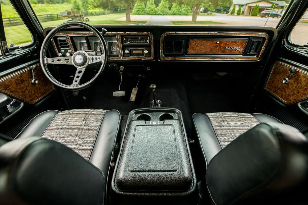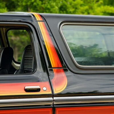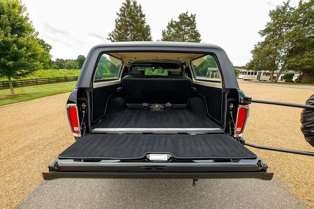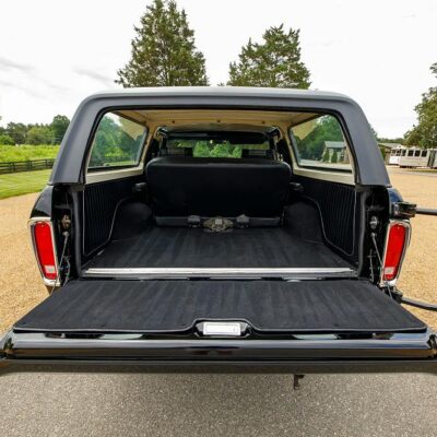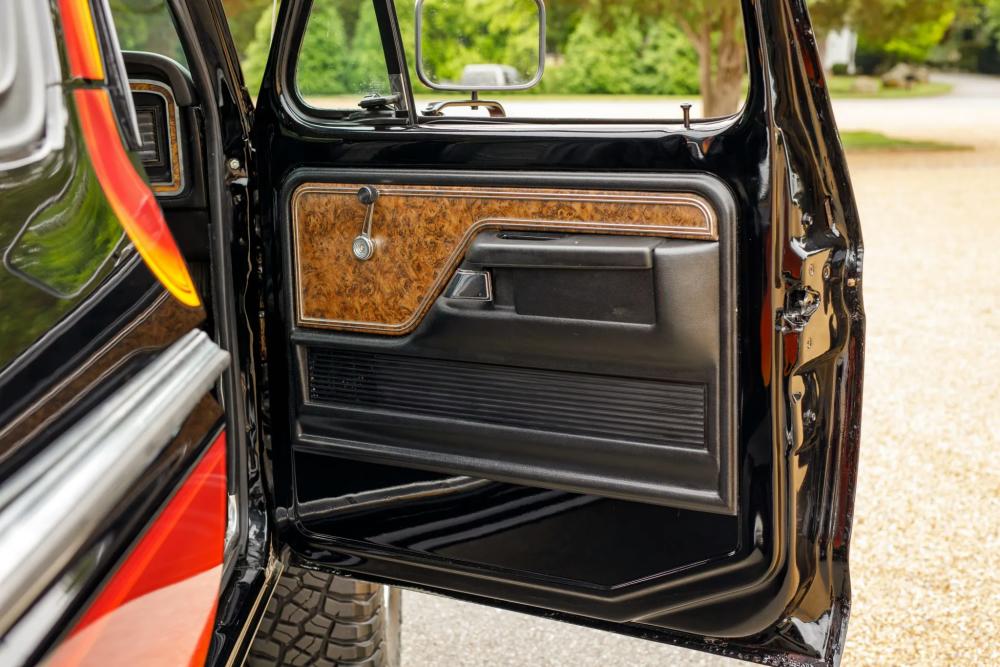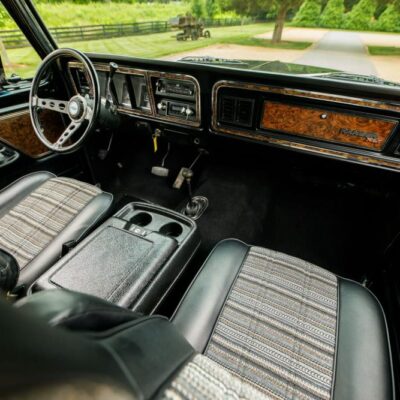 Finished in Raven Black with chromatic Free Wheeling graphics, this two-door SUV captures the bold styling of the late 1970s while adding tasteful upgrades for today’s driving comfort and reliability. It’s powered by a fuel-injected 460 ci V8 paired with a C6 three-speed automatic transmission and a dual-range transfer case.