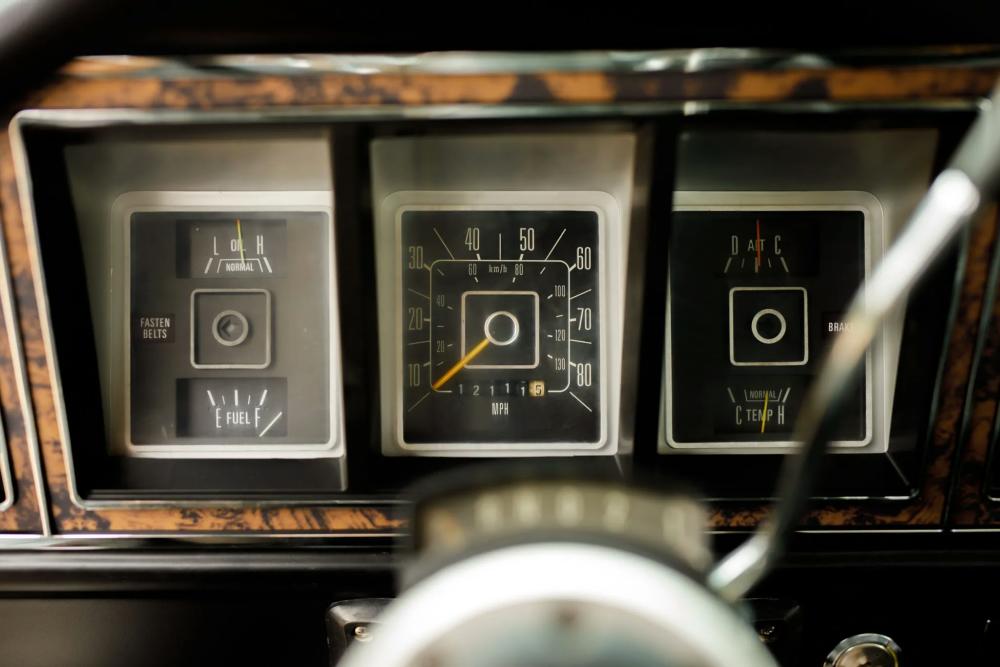 - Faux-woodgrain trim across the dash and doors