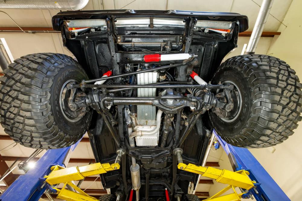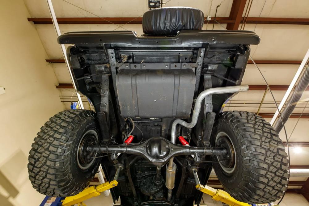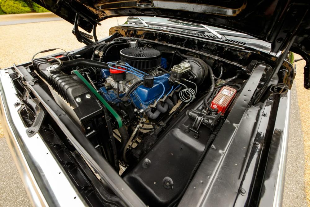 Power is transferred through a C6 three-speed automatic transmission and a dual-range transfer case, providing traditional four-wheel-drive capability. The engine bay has been meticulously detailed, and an oil change was performed in preparation for the sale.