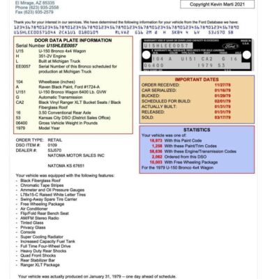 This 1979 Ford Bronco Ranger XLT Free Wheeling Edition is a stunning combination of factory heritage and modern craftsmanship. Originally delivered to Natoma Motor Sales of Natoma, Kansas, this Bronco underwent a full refurbishment and custom build commissioned by the owning dealer’s shop in Statesville, North Carolina, in 2021.