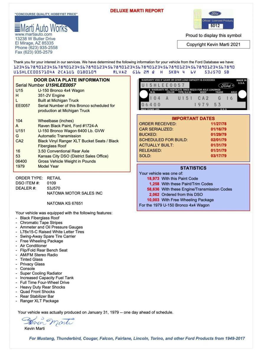 This modified Bronco is offered by the selling dealer on behalf of the current owner and comes with a Deluxe Marti Report, build records, and a clean New Mexico title. The listing originally appeared on Bring a Trailer.