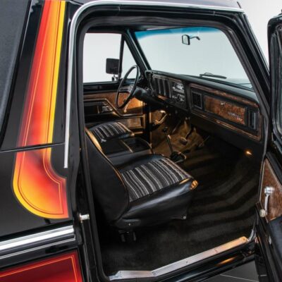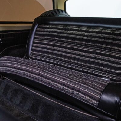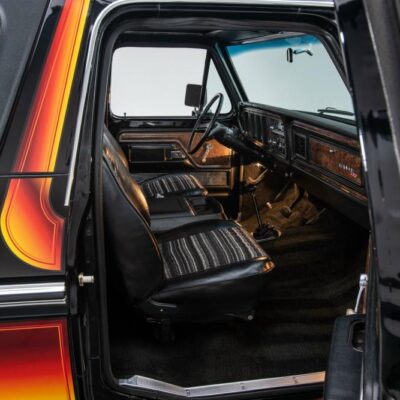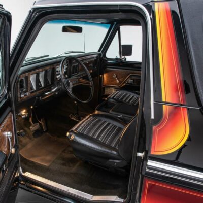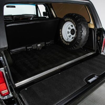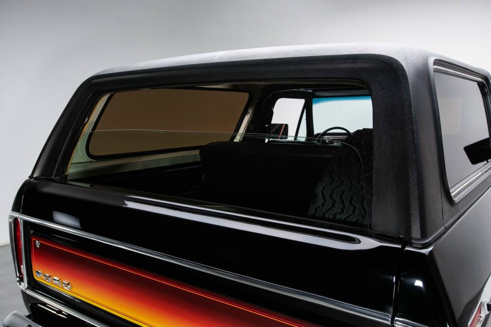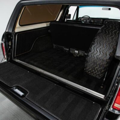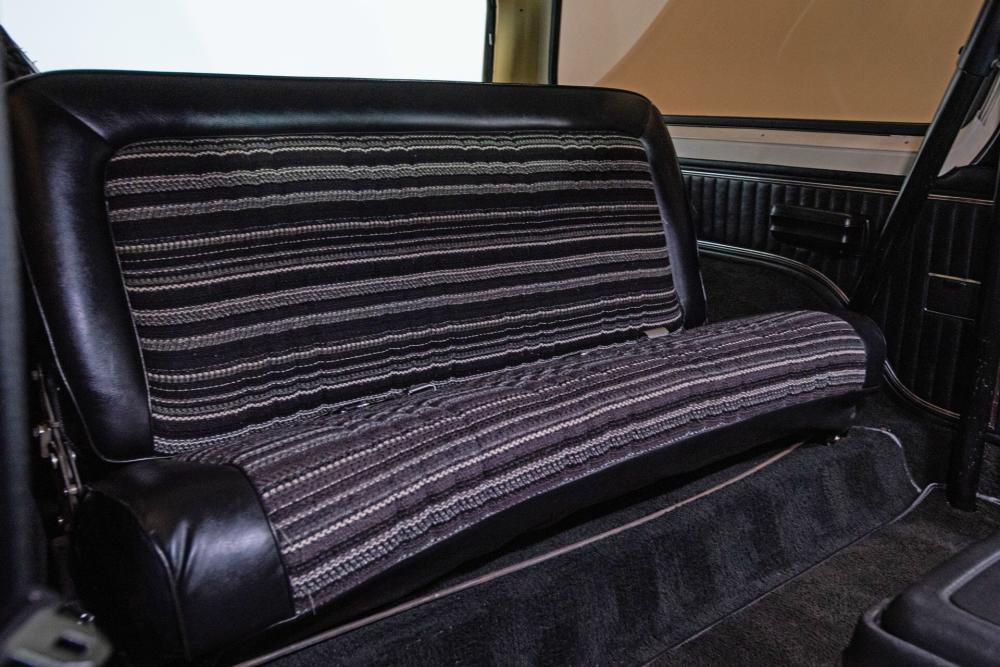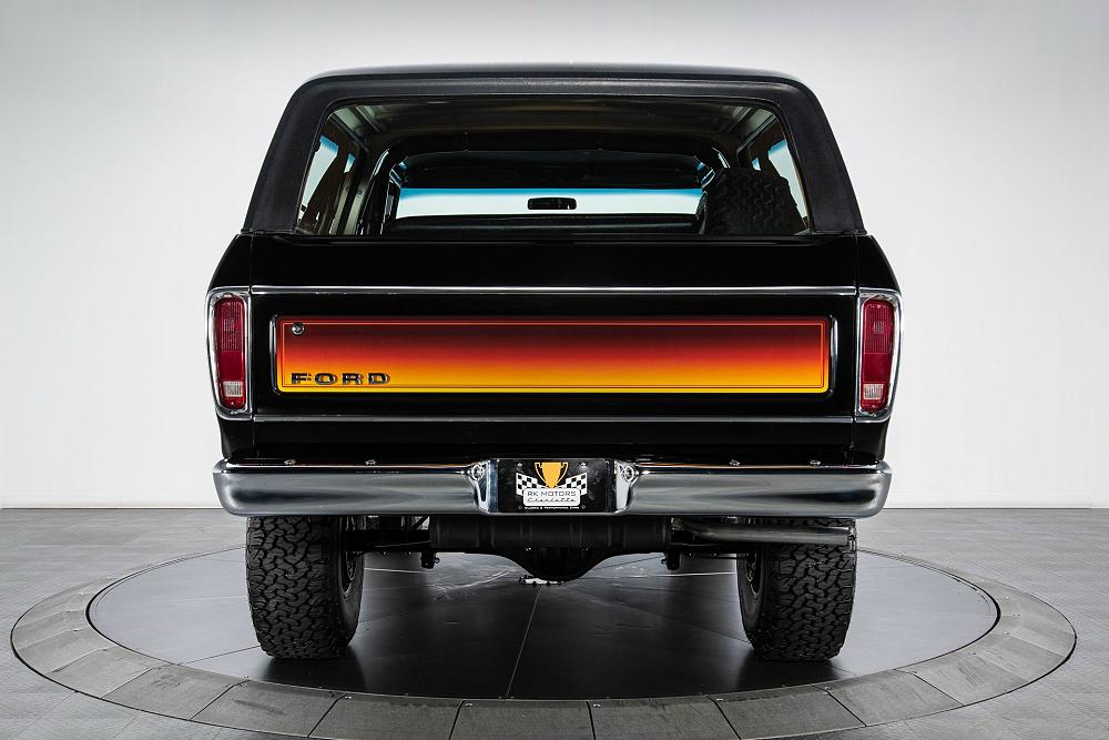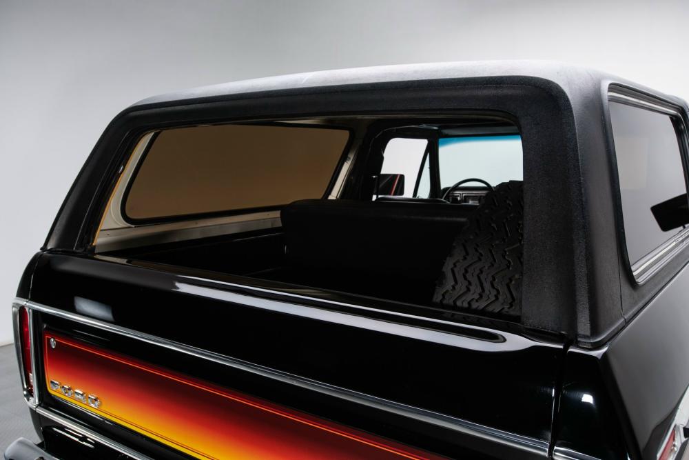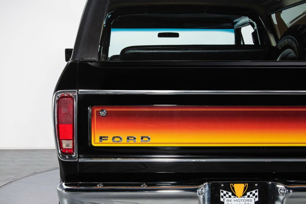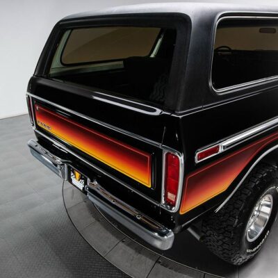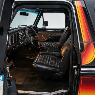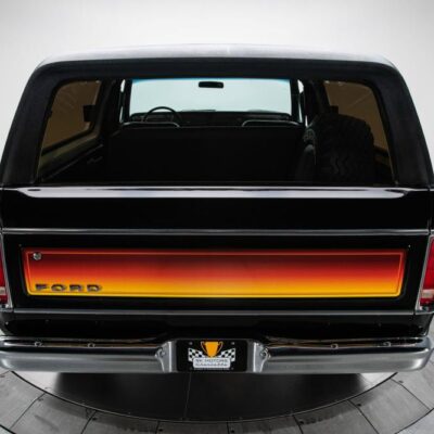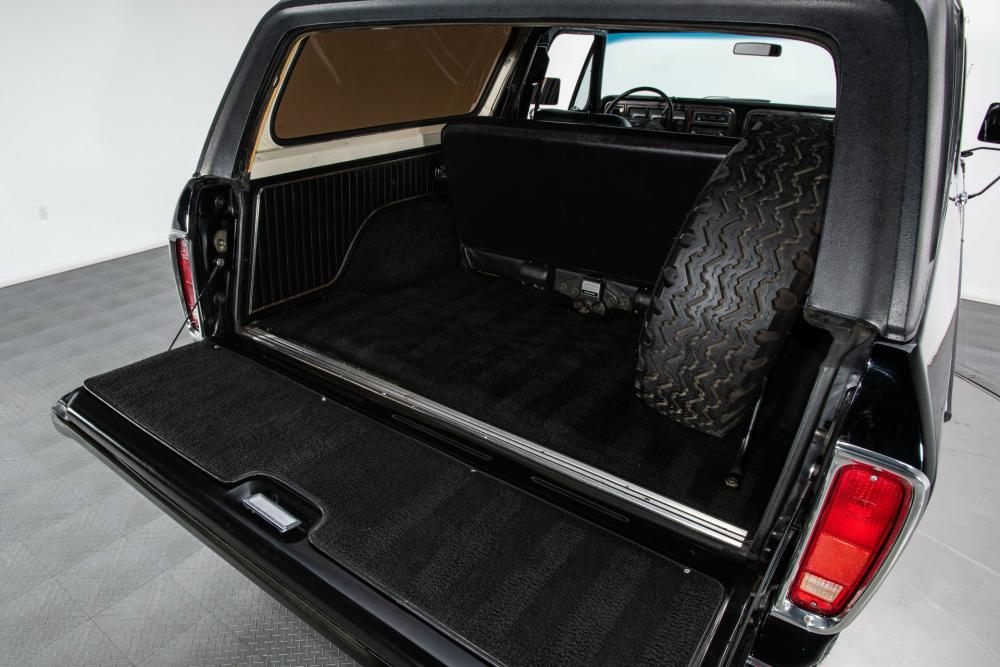 Behind this Bronco’s doors, an attractive cockpit features original, Ranger-spec upholstery that was commonly paired with the Free Wheeling appearance package. Houndstooth bucket seats in the front and rear bench provide enough comfort for you and at least three of your friends. A factory-fresh dash stretches crisp, Ranger-spec wood around clean telemetry, retro AM/FM audio and factory air conditioning. The driver spins a simple, ‘Ford’ branded steering wheel around a polished shifter. Ranger-spec side panels flow all the way to the truck’s hatch. And safety is greatly enhanced by a factory roll bar.