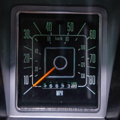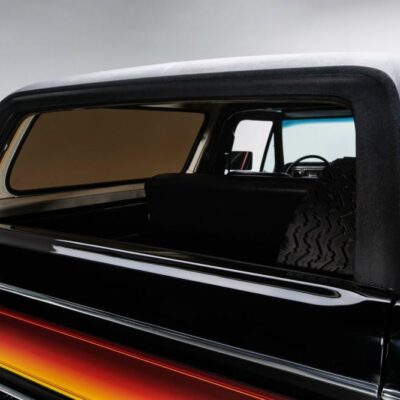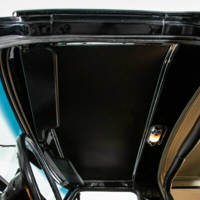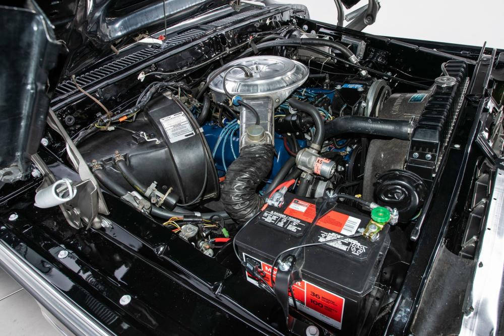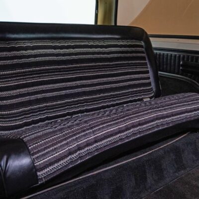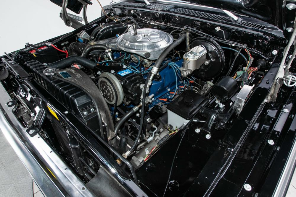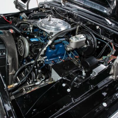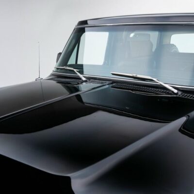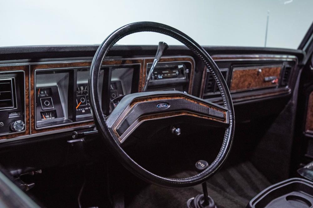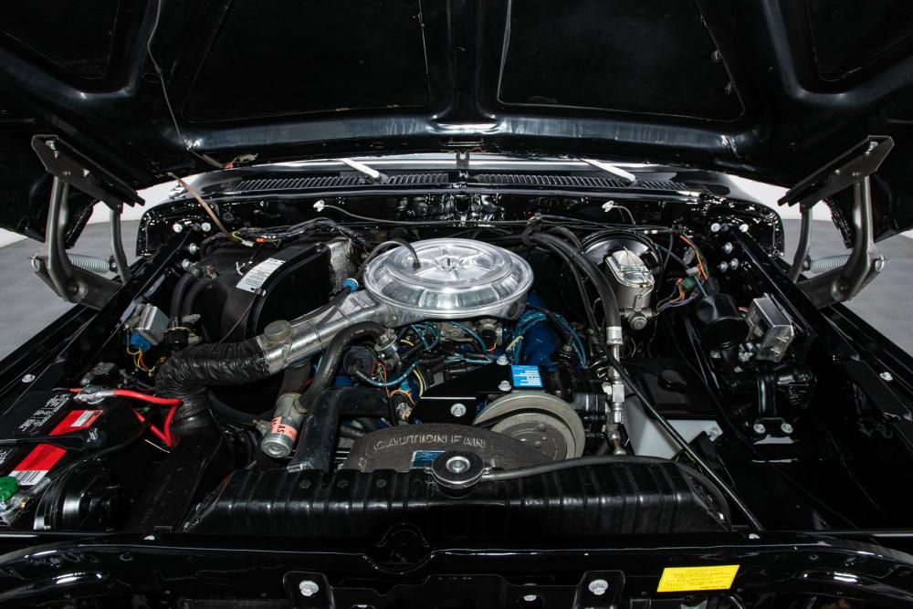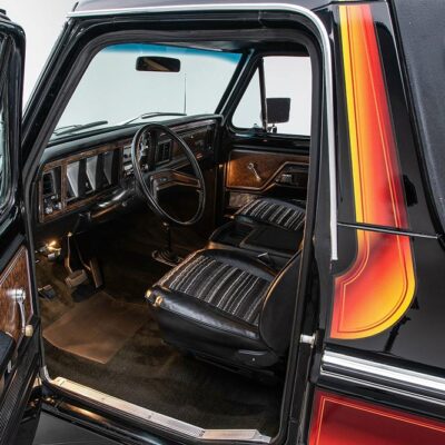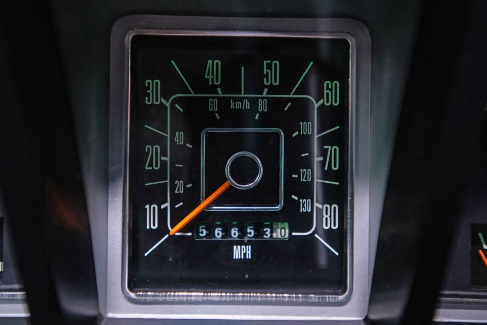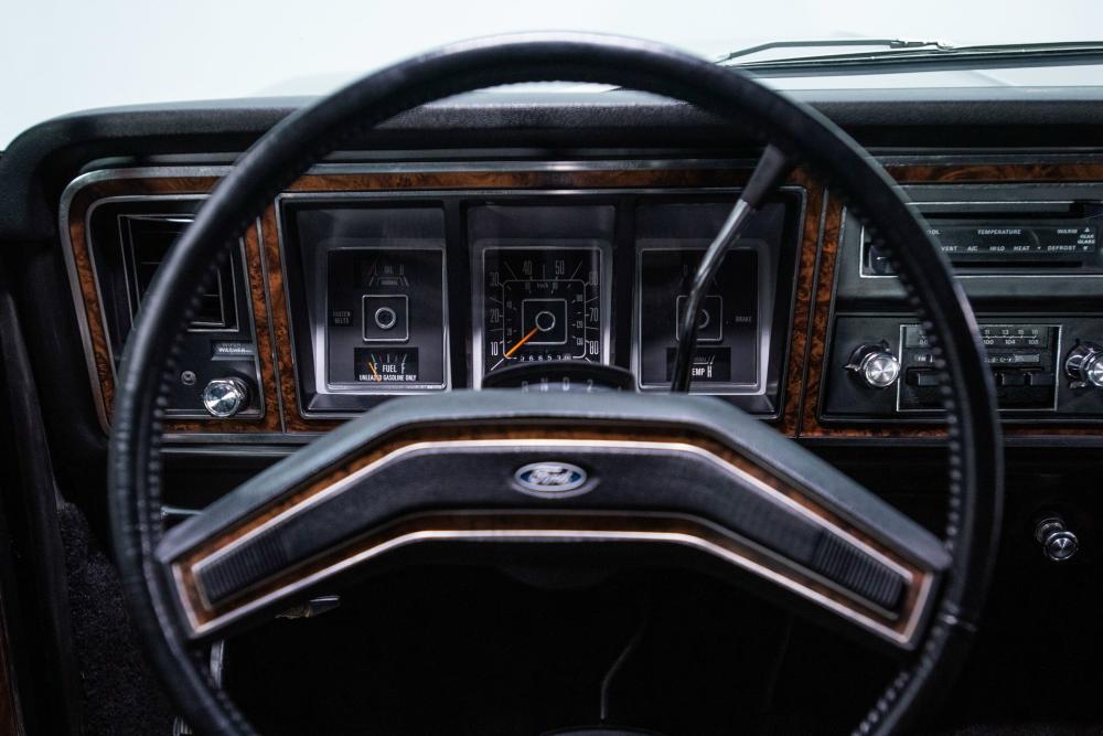 Behind this Bronco’s doors, an attractive cockpit features original, Ranger-spec upholstery that was commonly paired with the Free Wheeling appearance package. Houndstooth bucket seats in the front and rear bench provide enough comfort for you and at least three of your friends. A factory-fresh dash stretches crisp, Ranger-spec wood around clean telemetry, retro AM/FM audio and factory air conditioning. The driver spins a simple, ‘Ford’ branded steering wheel around a polished shifter. Ranger-spec side panels flow all the way to the truck’s hatch. And safety is greatly enhanced by a factory roll bar.