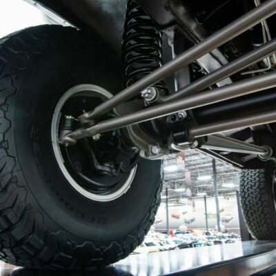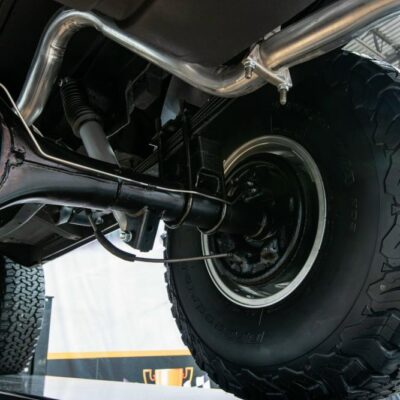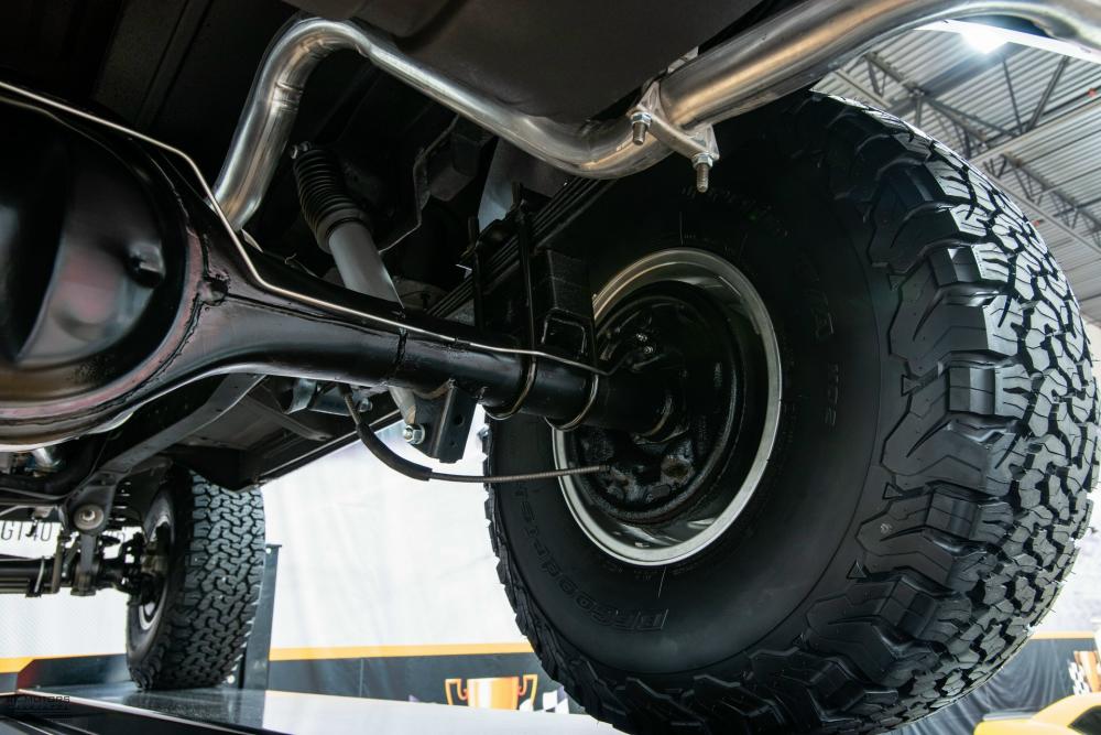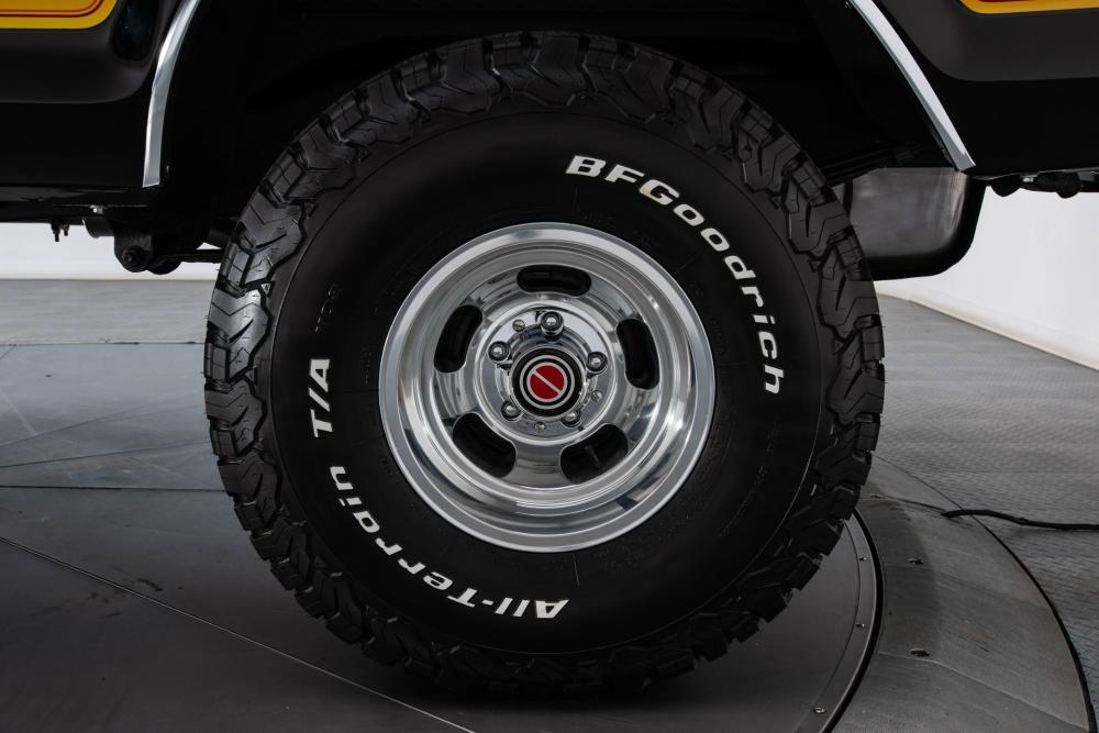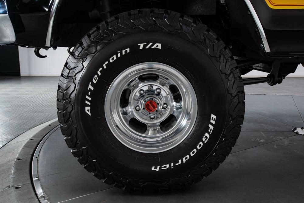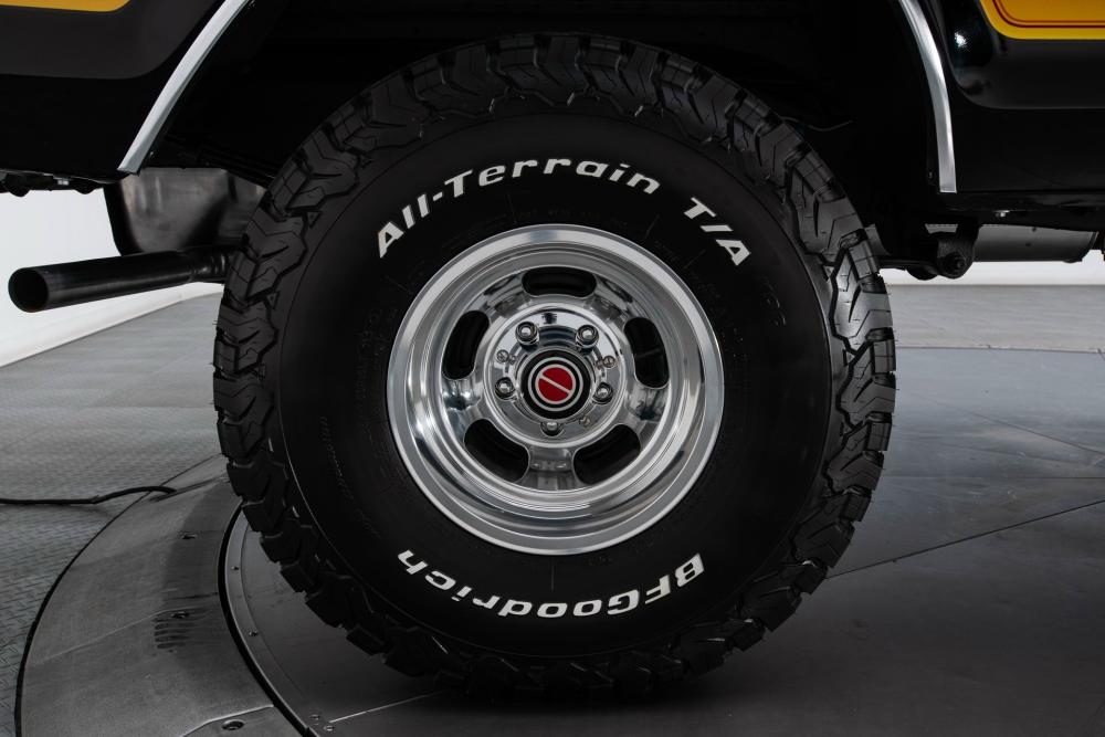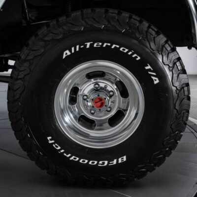This Bronco was modified with a Rough Country 4-inch suspension lift that makes room for 35/12.50R15 BF Goodrich All-Terrain T/A tires in 15-inch polished aluminum wheels.