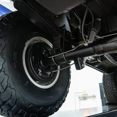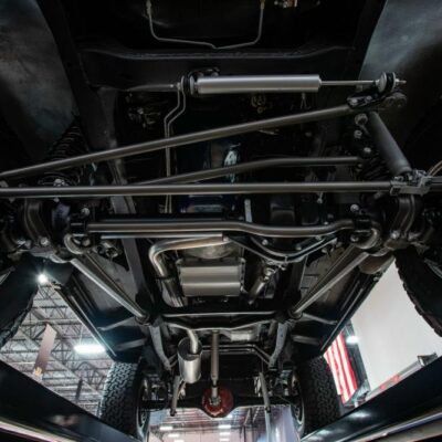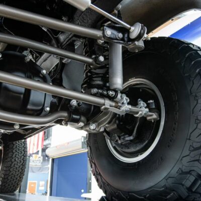This Bronco is powered by a 351 Modified backed by a C6 automatic transmission and NP205 transfer case. Power is transferred to the Ford 9-inch rear and Dana 44 front axles.