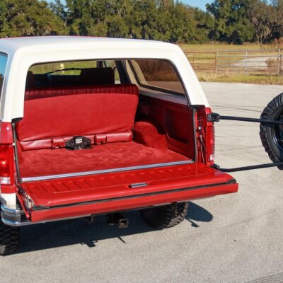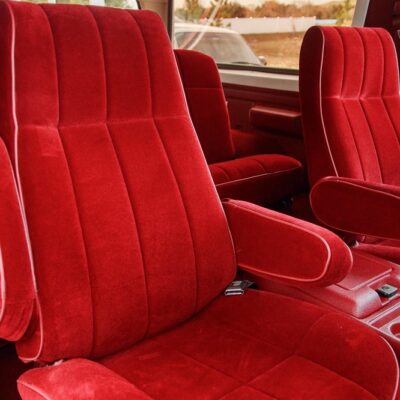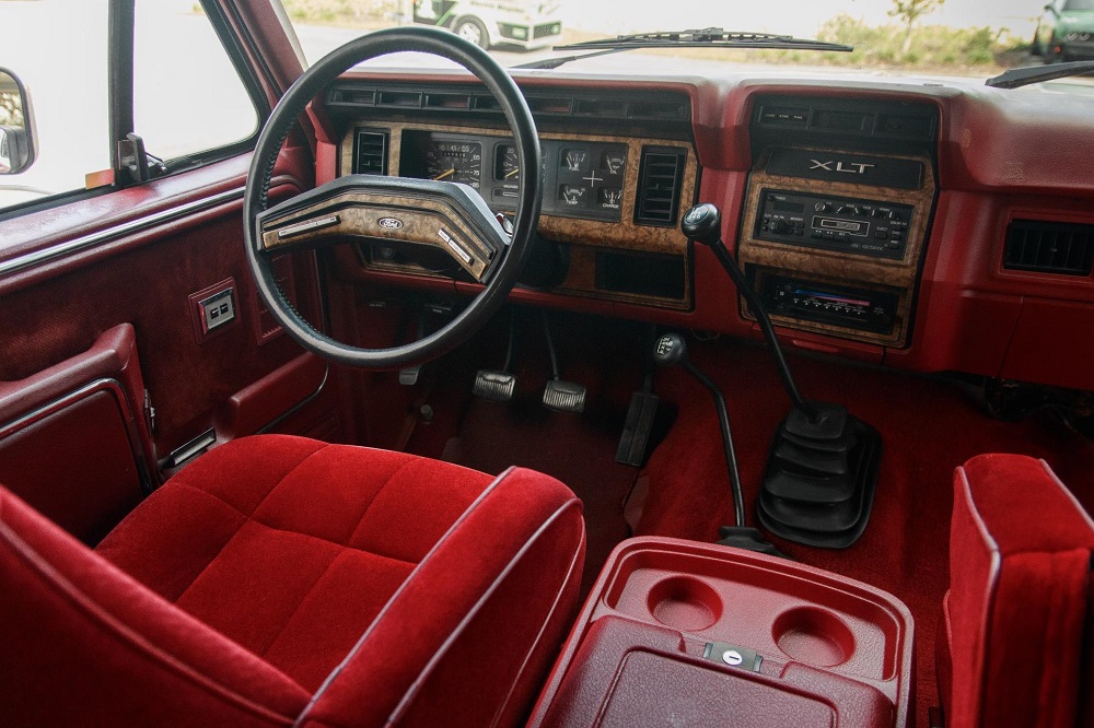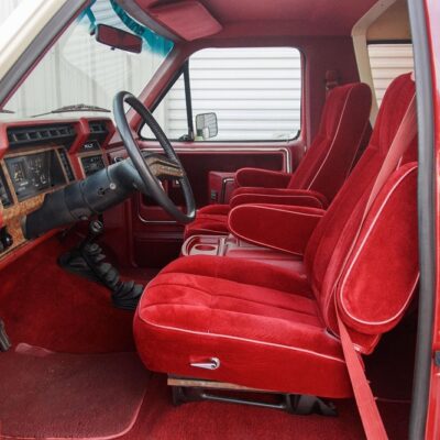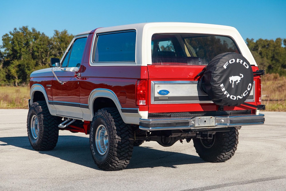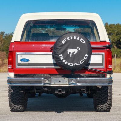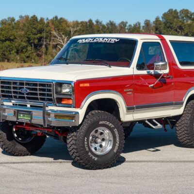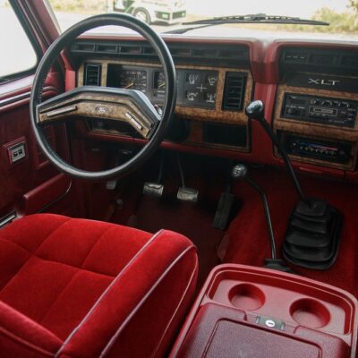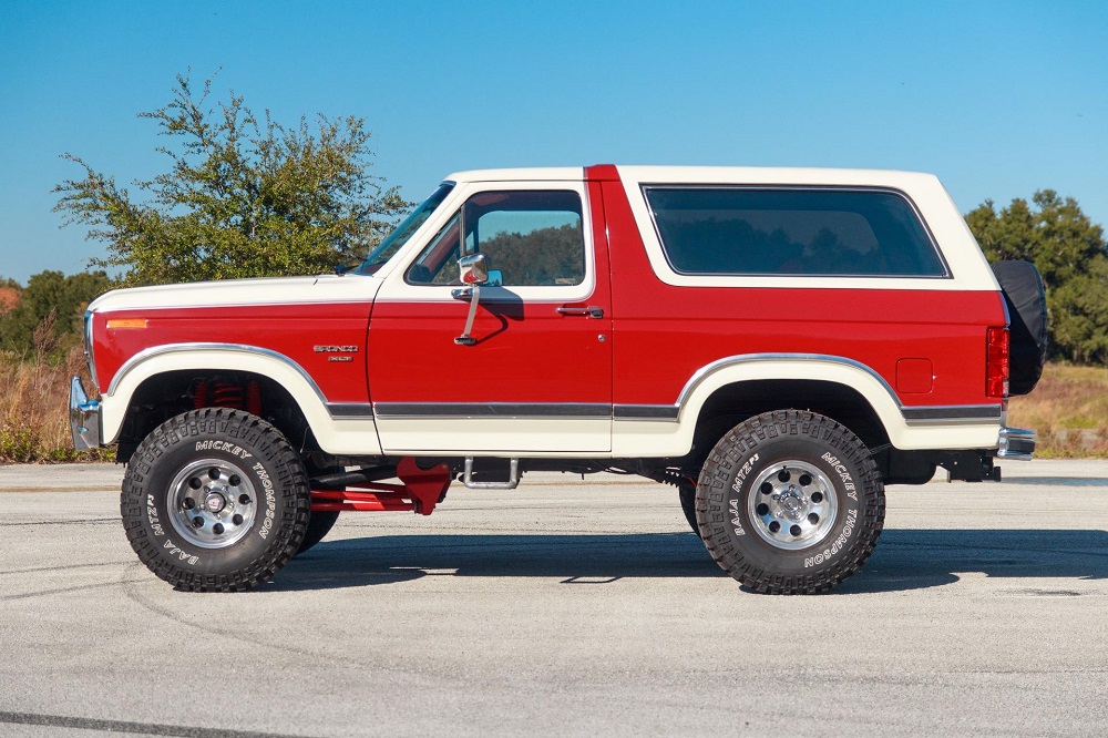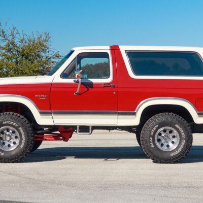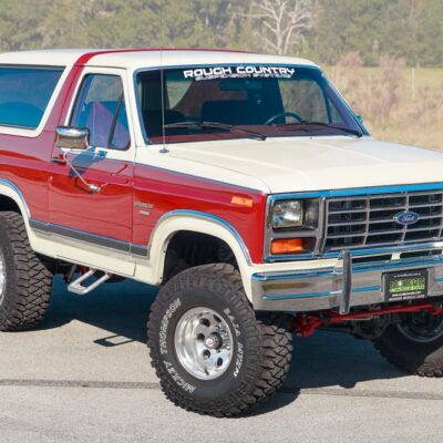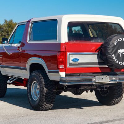 The 1986 Ford Bronco XLT you see here has had a frame off restoration. I love the two-tone white with red paint job and the red cloth interior. This thing looks like new inside.