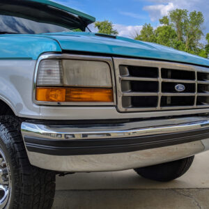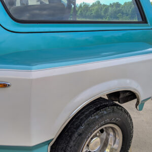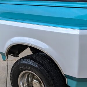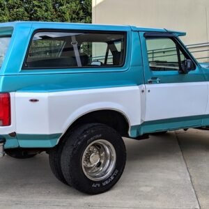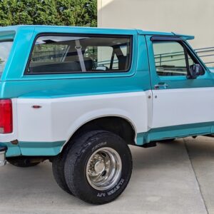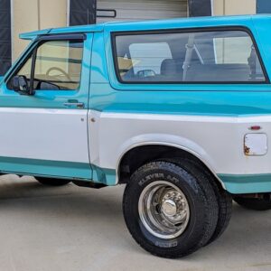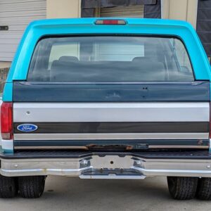Here’s something you don’t see very often. This 1994 Ford Bronco out of Maryland has been converted in to a dually. The front still retains its stock 5-bolt wheel hub pattern, but the rear wheels have a 10-lug pattern which is found on Ford’s F-450’s. The F-450 used a Dana 80, which is definitely a large axle. Definitely larger than the Dana 60’s guys like to swap in for more strength.