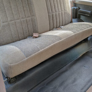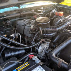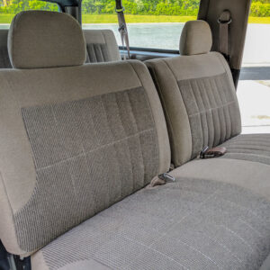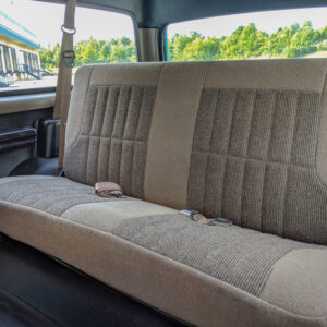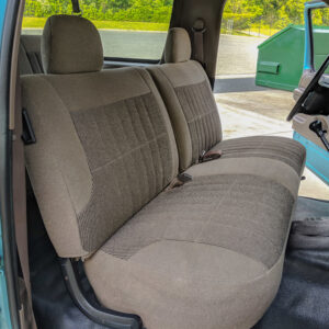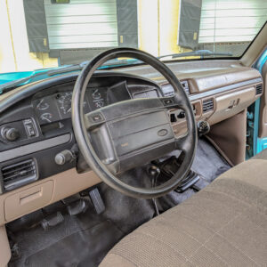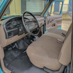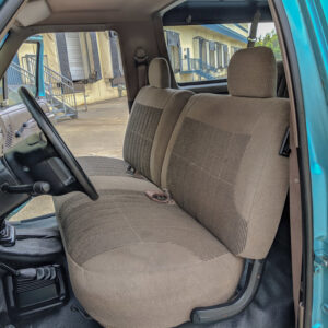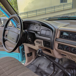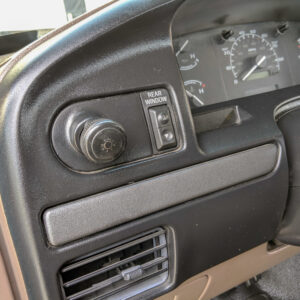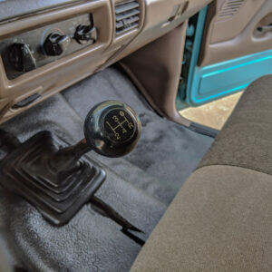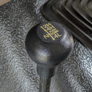 The vinyl flooring, manual windows and locks, and manual transmission and transfer case lends to the workhorse vibe of this truck.