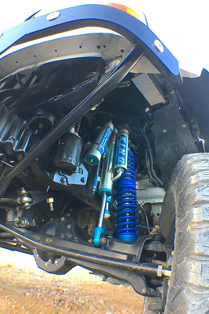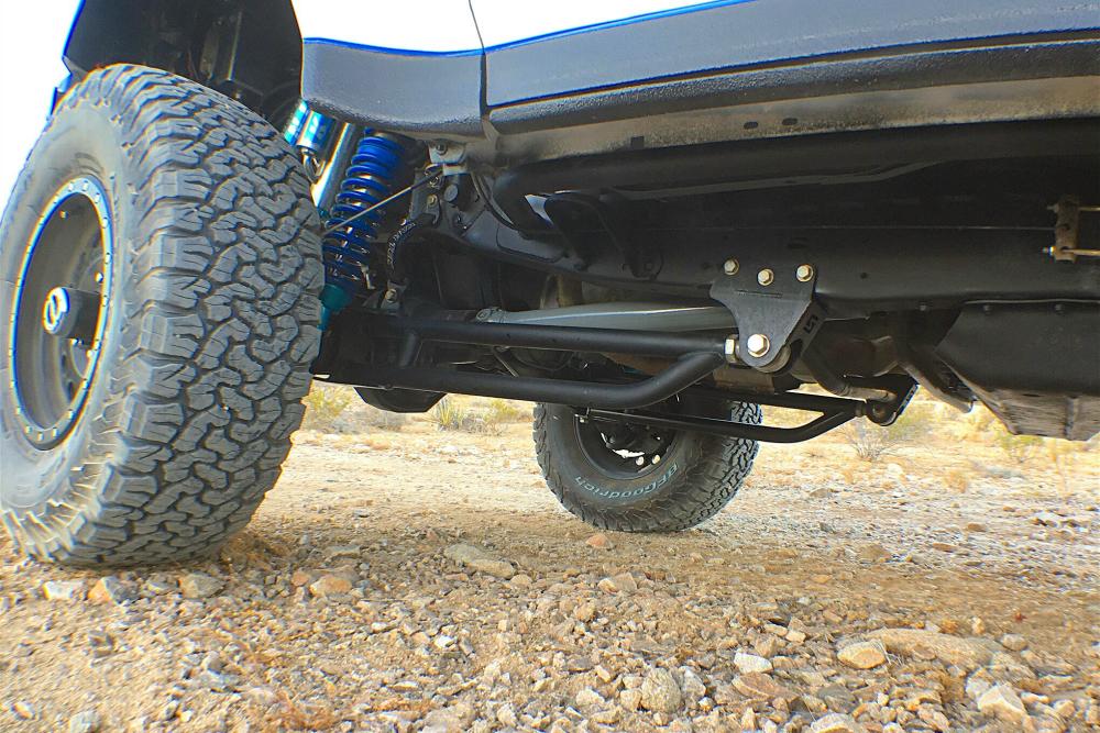 Solo Motorsports built the suspension that adorns the Ford. Their Stage 4 system gives the Bronco plenty of ability for the moderate speeds that Kilpatrick plans to achieve. Way more than moderate is actually no problem for the system, as King shocks and Deaver springs attach to the Solo long-travel system. Up front, the King’s are 2.5 coilover and triple bypass units with Solo Motorsports Dana 44 TTB axle beams. The beams widen out the Bronco an additional 4.5 inches over stock.