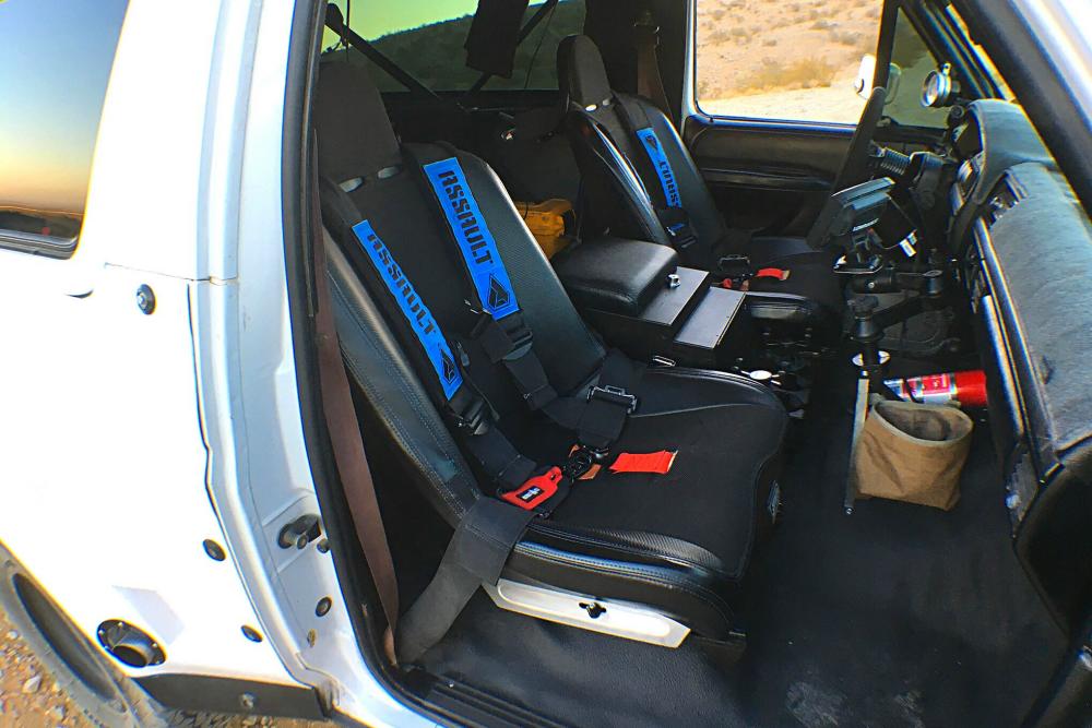 Kilpatrick knew that the Bronco had to be comfortable with long miles on and off road, and by that we mean he and his wife needed to be comfortable, so he went with a Grant steering wheel, custom PRP seats, along with sets of Assault UTV five-point harnesses so he could be safe too.