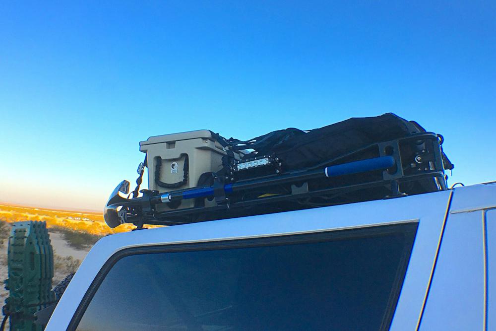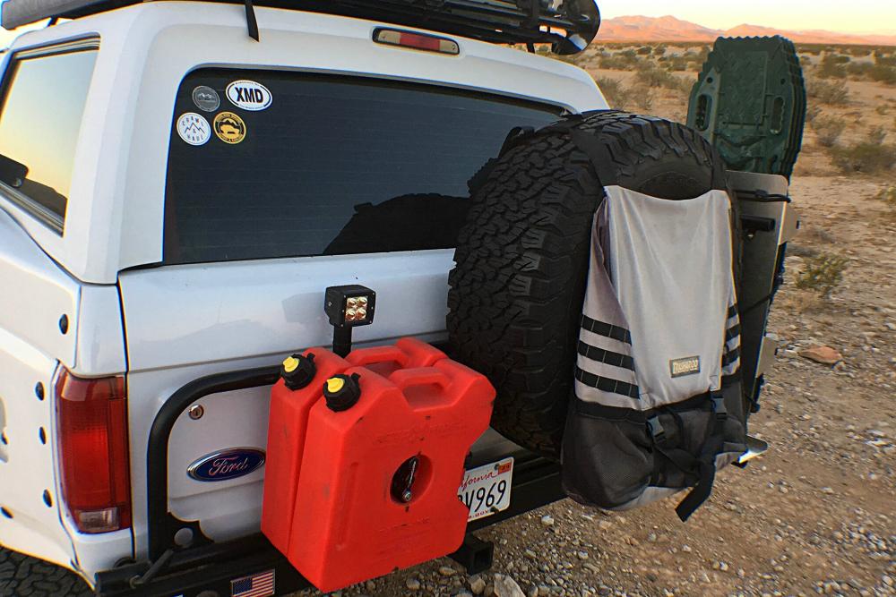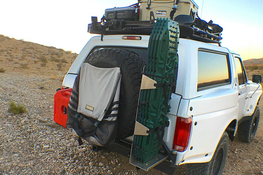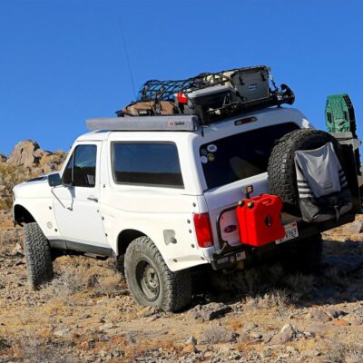 Kilpatrick also mounted a roof rack that in addition to an ARB roll out cover, there’s plenty of room for all the things he carries when out with his Bronco. There are boxes, tools, jacks, and a probably a kitchen sink up there too. But he won’t be left out in the cold when trouble comes. There’s another rack mounted to the back hatch with more items such as a quartet of traction ramps, a spare tire, a pair of fuel jugs and even a Trasharoo garbage bag, because Kilpatrick knows that you should take out everything you took in.