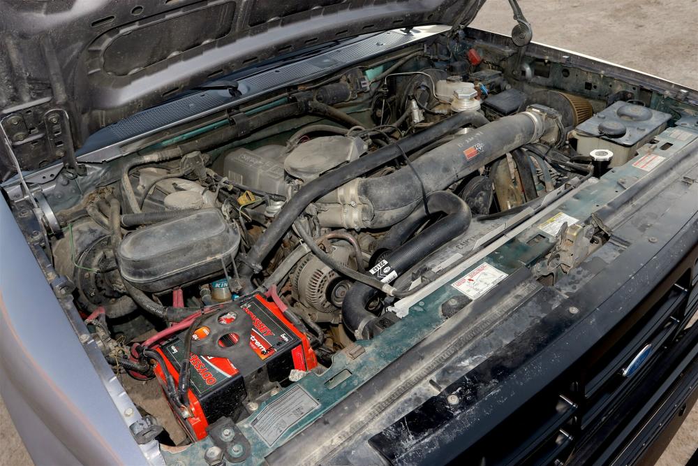 Though stock, the 5.0L engine is more than up for the task of getting the Bronco up and over the hills. A set of Flowmaster mufflers were added and the tubes are new due to the highly modified suspension system.