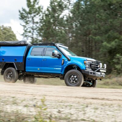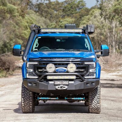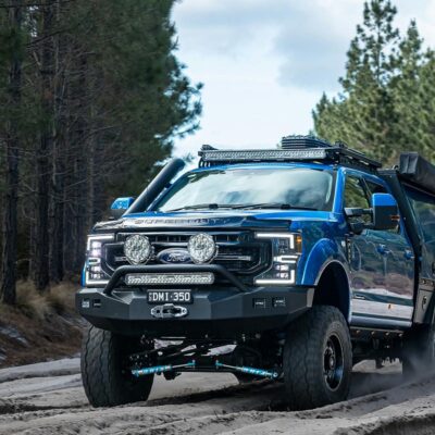 Although the 6.7L V8 turbo-diesel Ford Power Stroke engine is rated at 475hp at 2600rpm at the flywheel, it received a high-performance custom tune by the team at G&L Performance in Brisbane. The truck is said to make 560hp now. A five-inch AMVE snorkel with custom airbox was added to help the big diesel breathe easier.