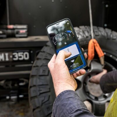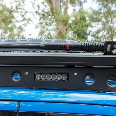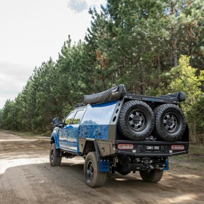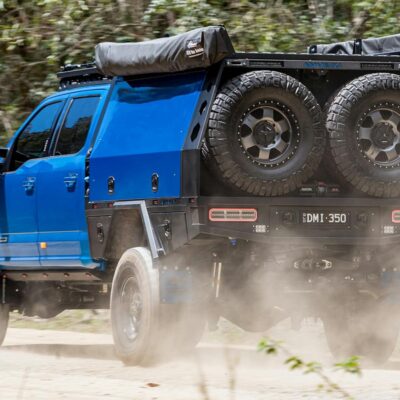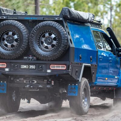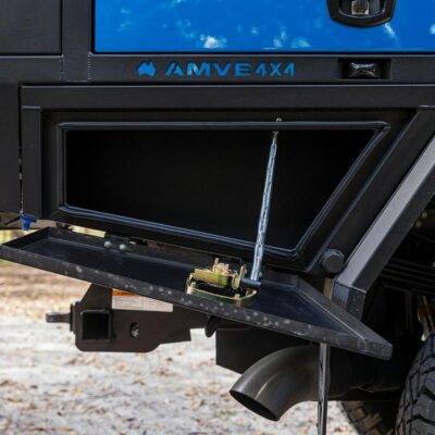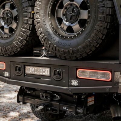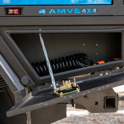 To make sure there’s plenty of fuel for a remote adventure, the stock fuel tank was replaced with a 230L Transfer Flow replacement fuel tank and a 180L of Australian-made Brown Davis auxiliary fuel tank is mounted in the original spare-wheel recess. That converts to 87 gallons of fuel.