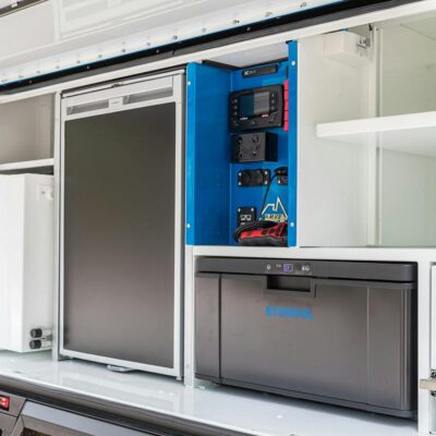For water, a 150L (39.62 gallons) stainless-steel food-grade water tank was installed along with a pump and two outlets.
