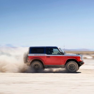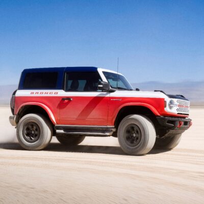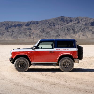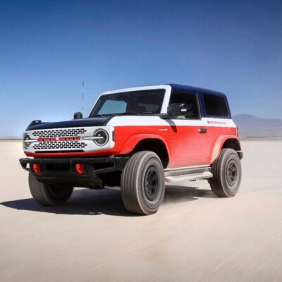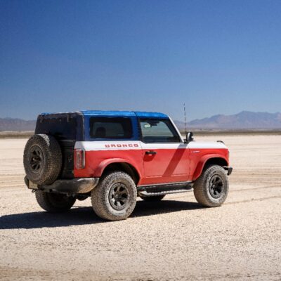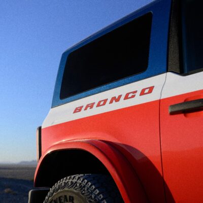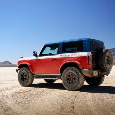 “We’ve been hinting at the return of a Bronco Stroppe Special Edition with our competition Broncos since returning to the Baja 1000 with the Bronco R in 2020,” said North American Design Director Gordon Platto. “That combination of Code Orange, Oxford White, and Atlas Blue, and matte black was chosen very deliberately on our race vehicles. It’s an iconic design and the history behind it is so important to the modern Bronco.”
