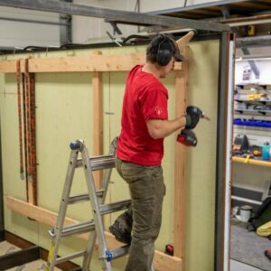 Starting with a $30,000 budget, Andrew bought a used 2005 Ford F-550 4×4 that had a utility bed, and then sold the bed to make room for the camper. Andrew chose to build his own camper to save money, and to make sure that he had plenty of room to live and work out of full time.