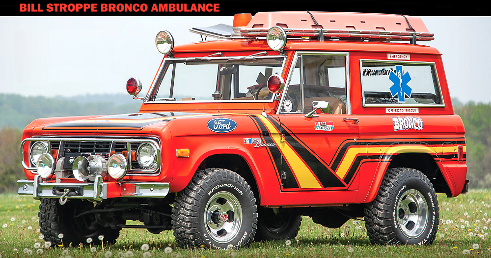 This 1977 Ford Bronco was built by Bill Stroppe as a Balloon Chaser Ambulance. In 1977 Ford sponsored a man name Karl Thomas who was attempting to set a record hot air transcontinental balloon flight. Ford had Stroppe design the chase vehicles, which included three Ford Econoline vans, three F-100 Stepside 2wd pickups and Two Broncos, one of which was set-up as an ambulance…you know just in case. The ‘ambulance’ was operated by two EMT’s (Emergency Medical Technicians) out of Los Angeles. The balloon, called the (Ford) Limited Edition Sail, piloted by veteran balloonist Karl Thomas, broke the record, covering the trip in 18 days.