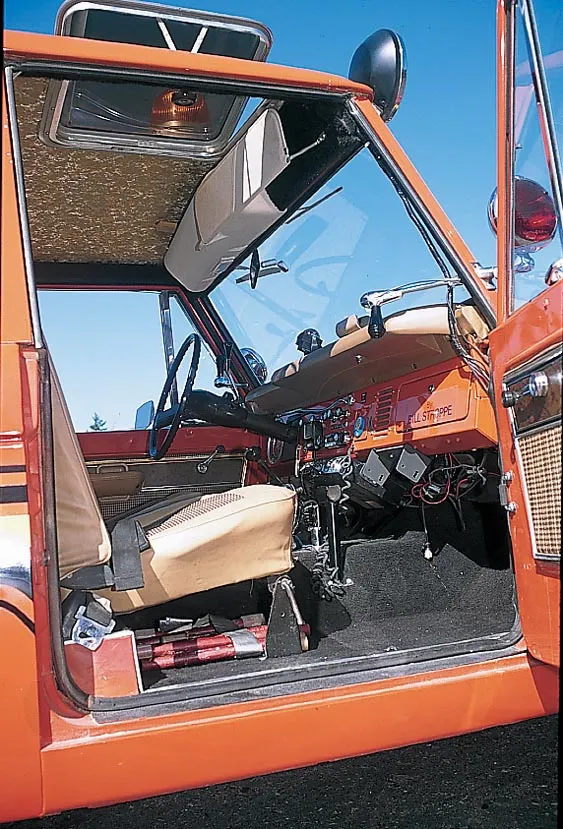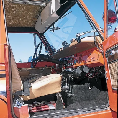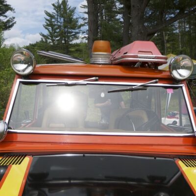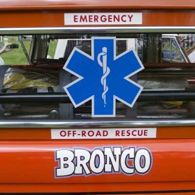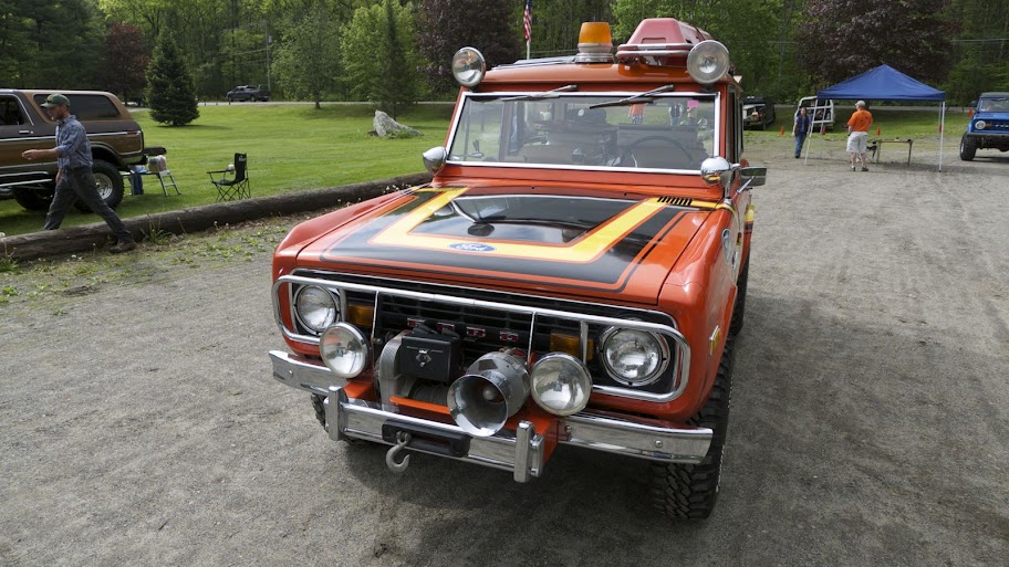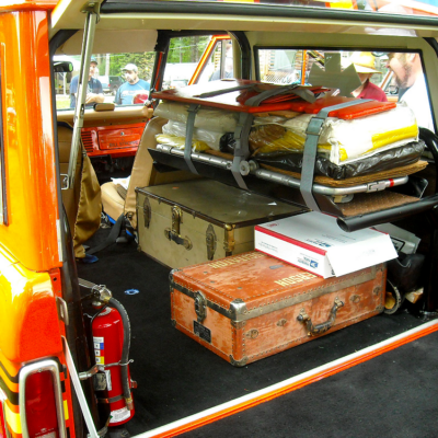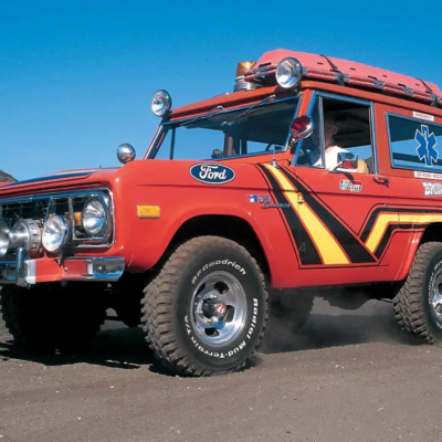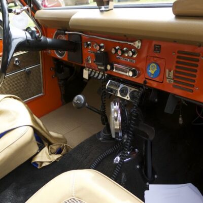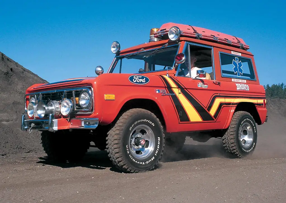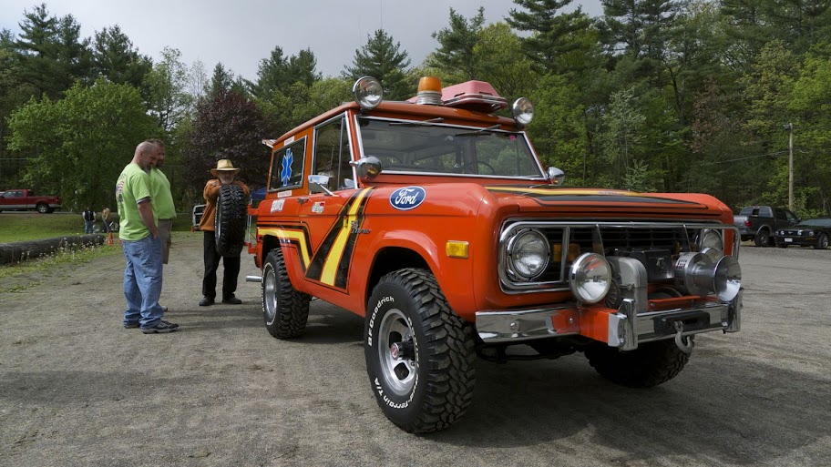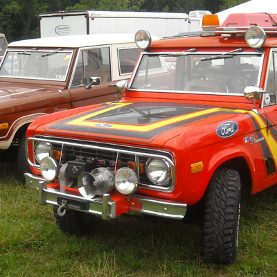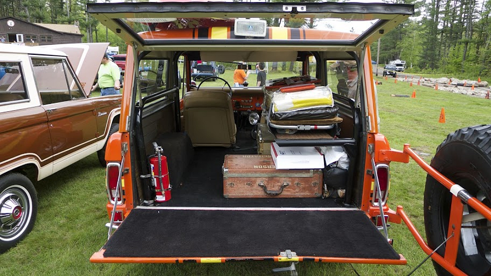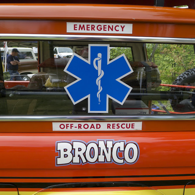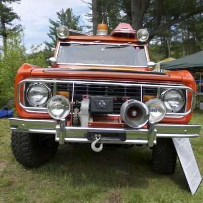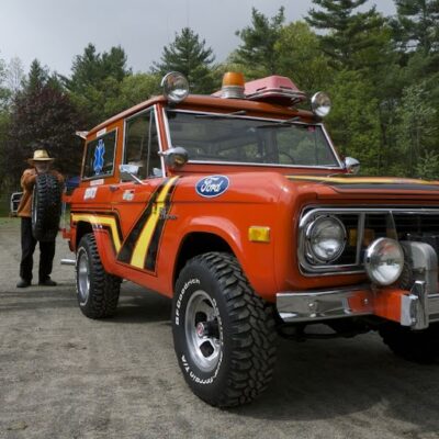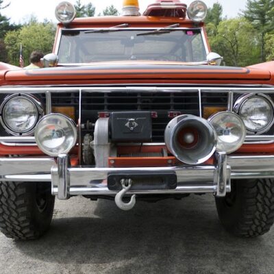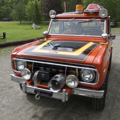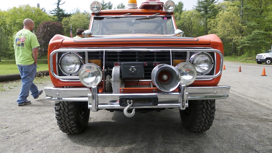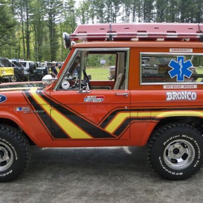 The Bronco was equipped with a Warn 8274 winch on the front, off-road lights to aid in nighttime operations, a mechanical siren on the front bumper, and amber beacon on the roof, and a pair of red ’emergency’ spotlights. A pair of rescue baskets were secured to the roof, and the interior was loaded with a fire extinguisher, stretcher, medical equipment, and supplies.
