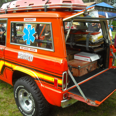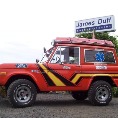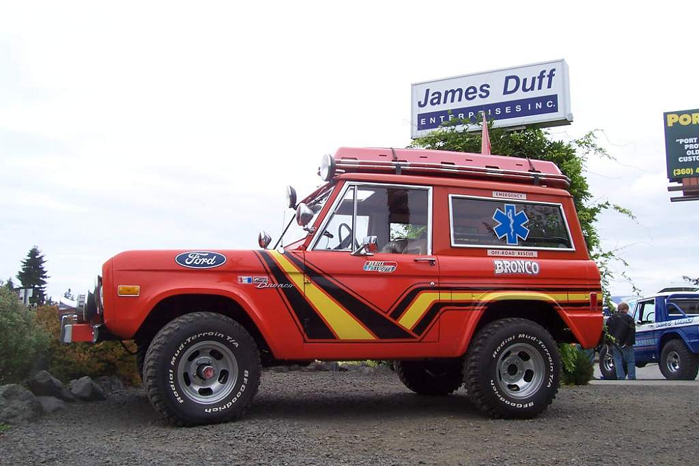 Stroppe kept the Bronco in storage and eventually sold it to James Duff in 1998. James Duff, who manufactures accessories for Ford Bronco’s, purchased the Bronco Ambulance and displayed it in their showroom in Sequim. When James Duff moved their business to Tennessee in the fall of 2006 they sold the Bronco to Don Peroni. Don has maintained the one-off piece of Bronco history and shows it off to the public from time to time.