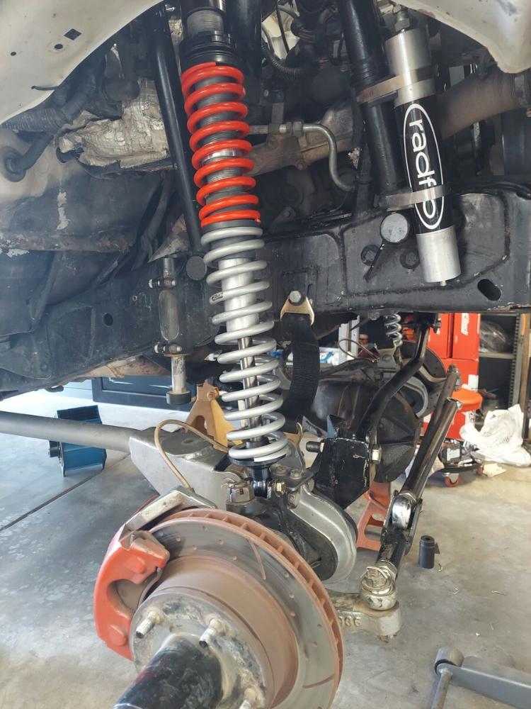 The front suspension consists of a Dana 44 solid axles with an E-Locker and 5.13 gears and is suspended by a pair of coilovers and James Duff radius arms.
