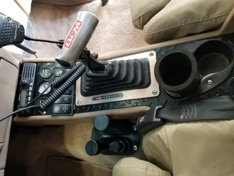 The interior features a B&M shifter, shifters for the Atlas transfer case, Cobra CB radio, Kenwood HAM radio, and 1,100-watt stereo.