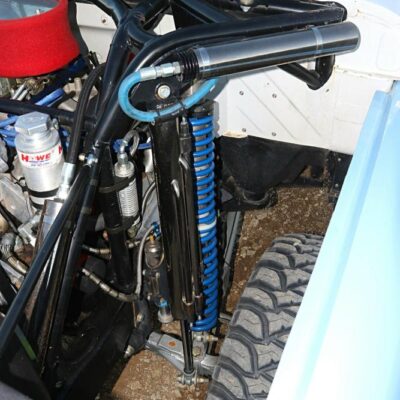 The F-100 now has a fully boxed frame, custom I-beams, radius arms, and a full rollcage built by Jason Heard. The steering box has been modified by Howe with a custom swing steering along with a double sheared steering arm.