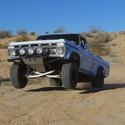 After seeing trophy trucks up close at a SCORE desert race in Baja Mexico, Michael Widener knew he had to have an offroad truck. With his love of hot rod engines and old Fords, Widener knew that he had to have a classic. When Widener found out that a family friend had a bone-stock 1973 Ford F-100 shortbed, he bought it sight unseen.