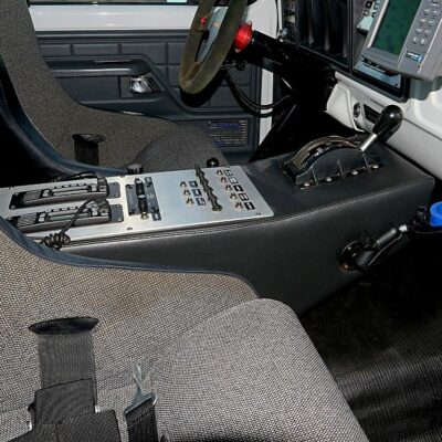 The Winters is mounted on top of a very nice center console that also houses two PCI Icom 50-watt race radios along with the PCI intercom system and a host of switches. A Lowrance GPS has been bolted to the dash to provide guidance while the Vintage Air system provides A/C, heat, and defrost.