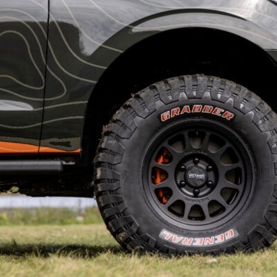 The 2022 Ford Expedition has the best available ground clearance in its class at 10.6 inches, and the concept adds another two inches with custom FOX Performance Elite Series 2.5-inch shocks with Dual Speed Compression adjusters and remote reservoirs front and rear. In addition, 17-inch Method Race Wheels with Bead Grip technology are wrapped with 35-inch General Grabber all-terrain tires.