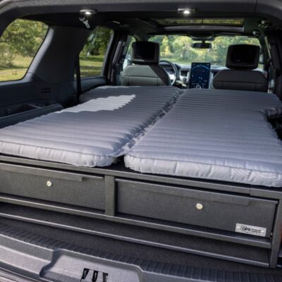 The interior of the Expedition Timberline Off-Grid concept reveals an EZ STAK custom aluminum dual storage drawer unit that sits under a custom Luno camping mattress with room for two. To make sleeping in the concept vehicle even more comfortable, Luno also provides a concept-specific Base Extender, window shades and portable USB fan. And to ensure this concept vehicle can handle electric loads needed at off-the-grid campsites, a Clarios AGM battery specifically designed for vehicles supporting the most demanding applications.