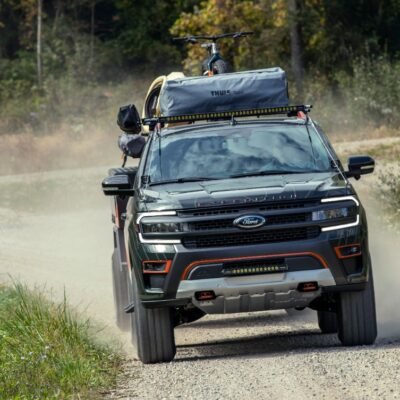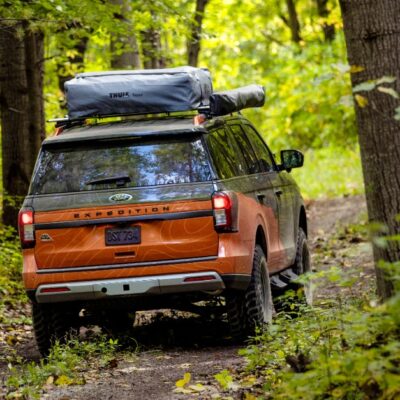 To ensure the best mobile campsite, the Expedition Timberline Off-Grid concept leverages Ford’s Outfitter collection with dealer-available accessories. These include a Thule Tepui Explorer tent with crossbars that attach to its roof rails, a factory-available transmission shield, Overland Vehicle Systems’ Nomadic 180-degree awning that easily pulls out to help protect adventurers from the elements, and a Wild Land portable privacy room shower.