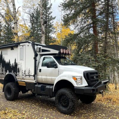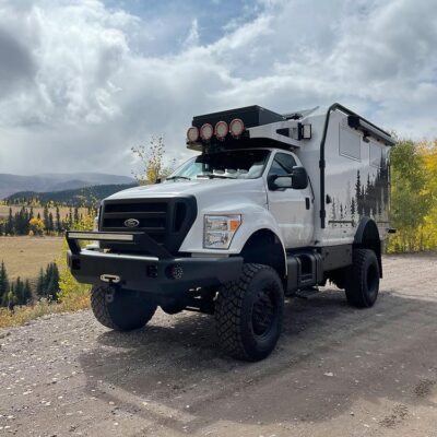 Looking for the ultimate survival vehicle? This expedition vehicle is made up of a fiberglass body on a 2004 Ford F-750 chassis. The F-750 is the largest commercial truck that Ford makes.