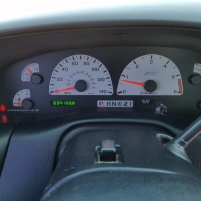 An Auxiliary Transmission Cooler package that helps maintain the condition of the transmission fluid is standard equipment. The Lightning’s performance speaks for itself. The 440 lb-ft torque peak is reached at 3000 rpm, 360 horsepower arrives at 4750 rpm, and the redline occurs at 5250 rpm. Not surprisingly, the SVT Lightning delivers rapid acceleration: 60 mph arrives in 6.2 seconds, and the quarter-mile is a done in 14.6 seconds at 97 mph. Top speed is an ungoverned 140 mph.