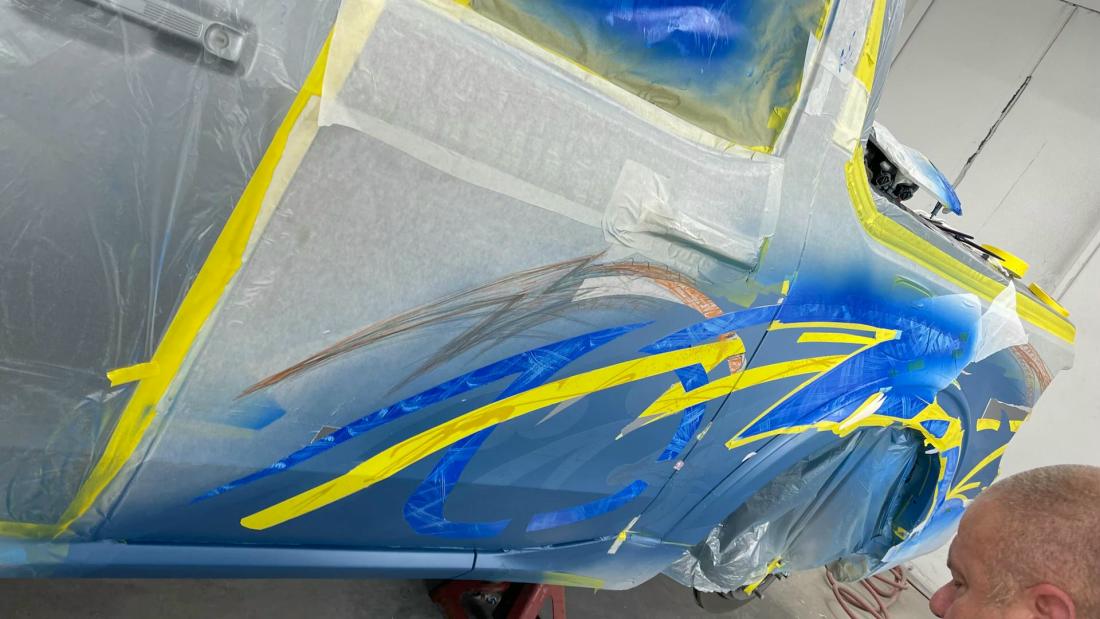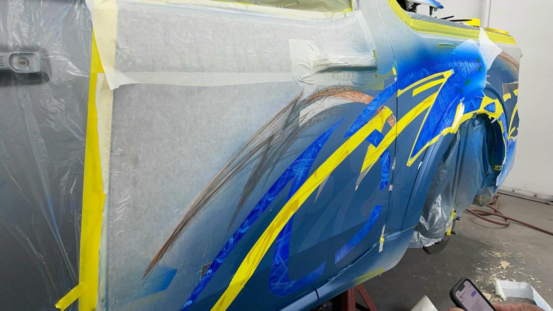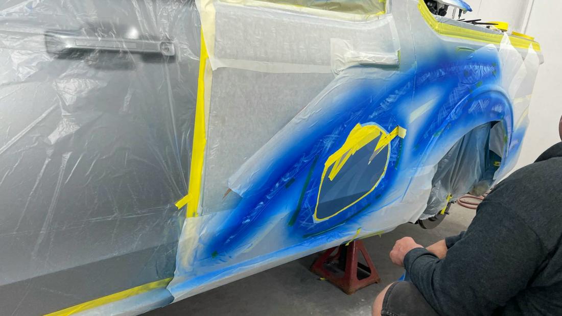 Kenneth McCay's Custom 2022 Ford Maverick in the paint booth