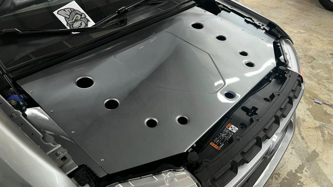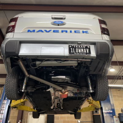 Performance enhancements include a custom air intake and exhaust system by BC Raceworks, a custom engine cover by My World Fabrication, and MRT No Drill Hood Struts to display the turbocharged 2.4L EcoBoost engine during shows. These upgrades ensure that Kenneth’s Maverick performs as impressively as it looks.