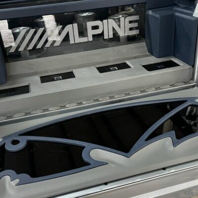 A 35-inch custom ragtop roof adds versatility for nighttime cruising, while the interior upgrades include diamond-stitched seats, custom door panels, multiple speakers in each front door, a speaker in each rear door, and subwoofers installed in the floor. NTX Audio Innovations outfitted the Maverick with a powerful Alpine audio system featuring four 12-inch subwoofers, two 10-inch subs, six 6.5-inch component speakers, and dual 5-channel amplifiers backed by a pair of sub amps.