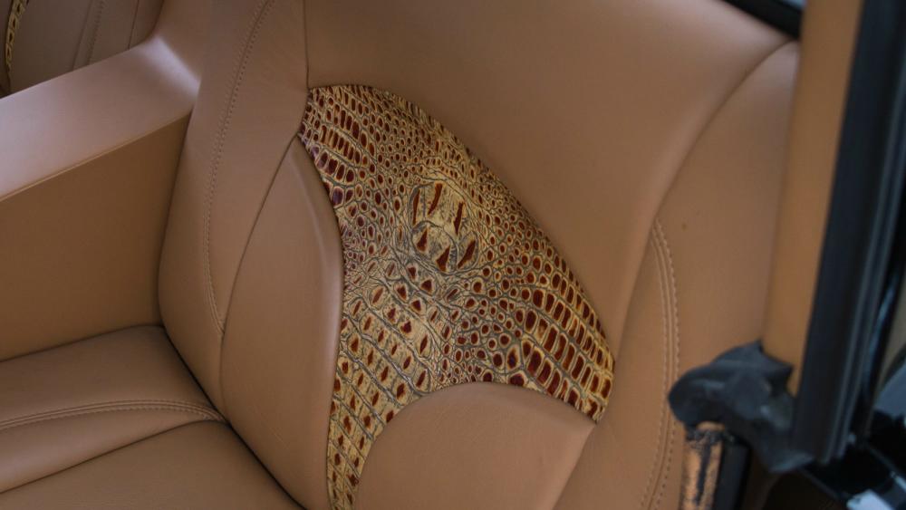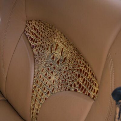 Tan leather upholstery with Alligator inserts